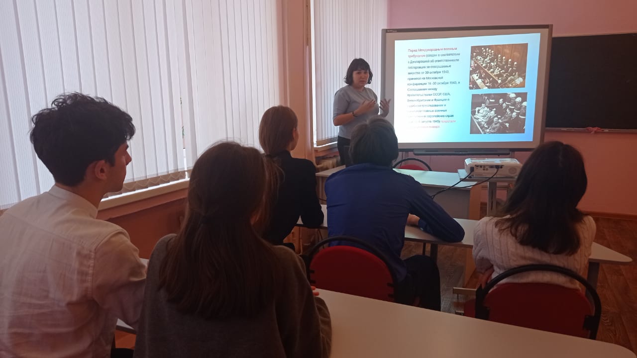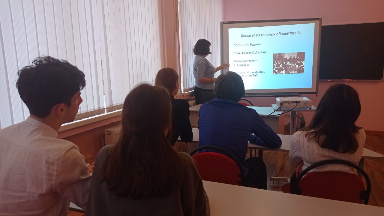 В преддверии этой даты для обучающихся 11 классов прошел видеоурок на тему «День начала Нюрнбергского процесса». Советник директора по воспитанию рассказала обучающимся о некоторых исторических моментах процесса. Также Исламова Милена (9б класс), Нигаматзянова Алсу (11б класс) и Кунакбаев Димитрий (11б класс) прочитали стихи Наума Коржавина «Мужчины мучили детей».