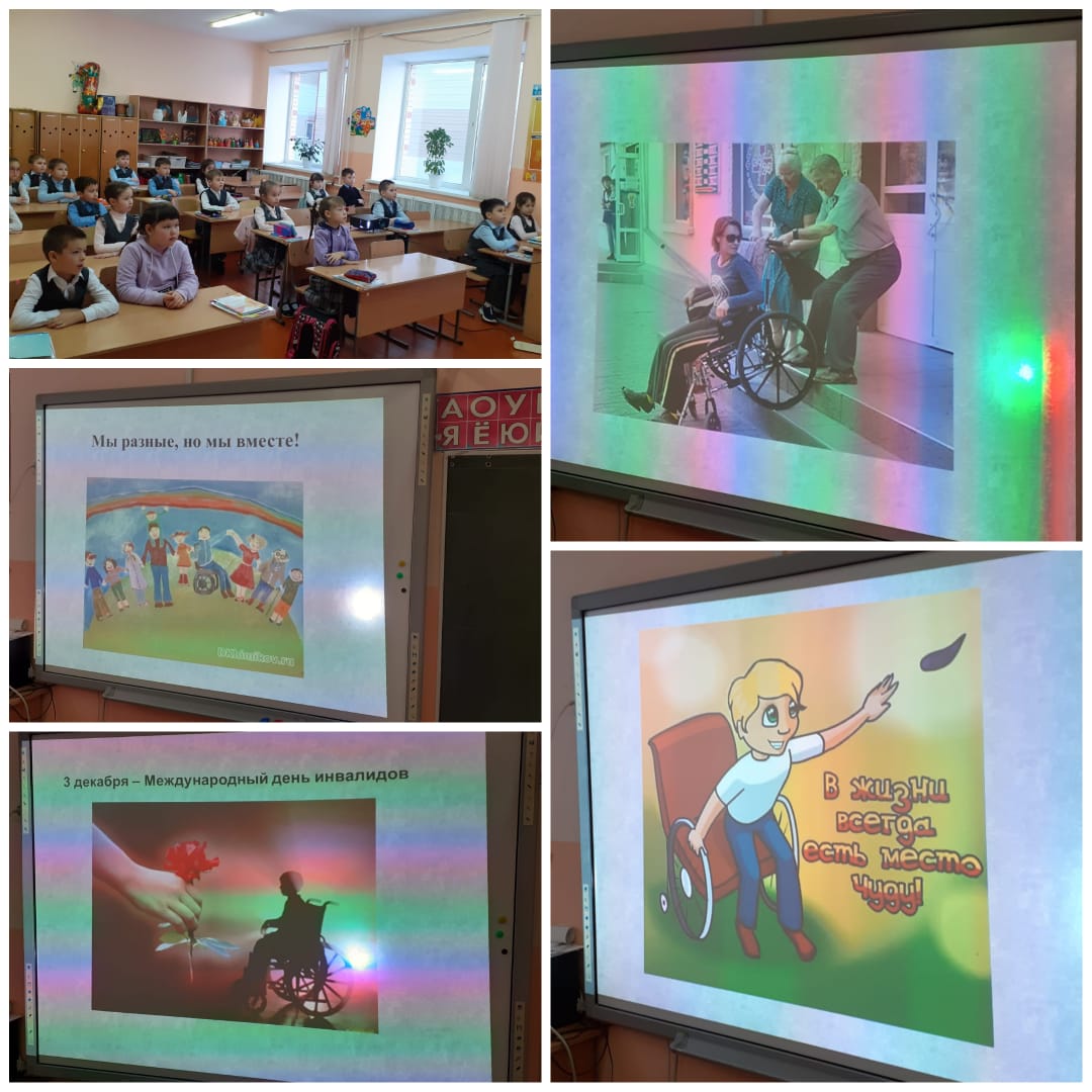 Сегодня в 1 г классе прошел классный час «Доброта спасет мир», посвященный Международному Дню инвалидов. В ходе классного часа учащиеся узнали, что среди них есть и жизнестойкие люди - они общаются, занимаются спортом, искусством, работают, живут полноценной жизнью. Дети сделали вывод, что надо относиться к инвалидам с уважением, тогда от нашей доброты людям с ограниченными физическими возможностями будет легче переносить тяготы и лишения.