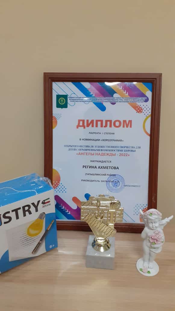 2 декабря в районном доме культуры с.Аскино состоялся уникальный творческий фестиваль для детей и молодежи с ограниченными возможностями здоровья «Ангелы наdежdы-2022». Сотни талантливых ребят из разных городов и районов представили свое творчество на сцене. И наша обучающаяся из 8в класса в номинации «Хореография» стала обладателем диплома лауреата 1 степени. Поздравляем Ахметову Регину! Желаем и дальше быть по жизни победителем, достигать все новых и новых высот и не останавливаться на достигнутом.