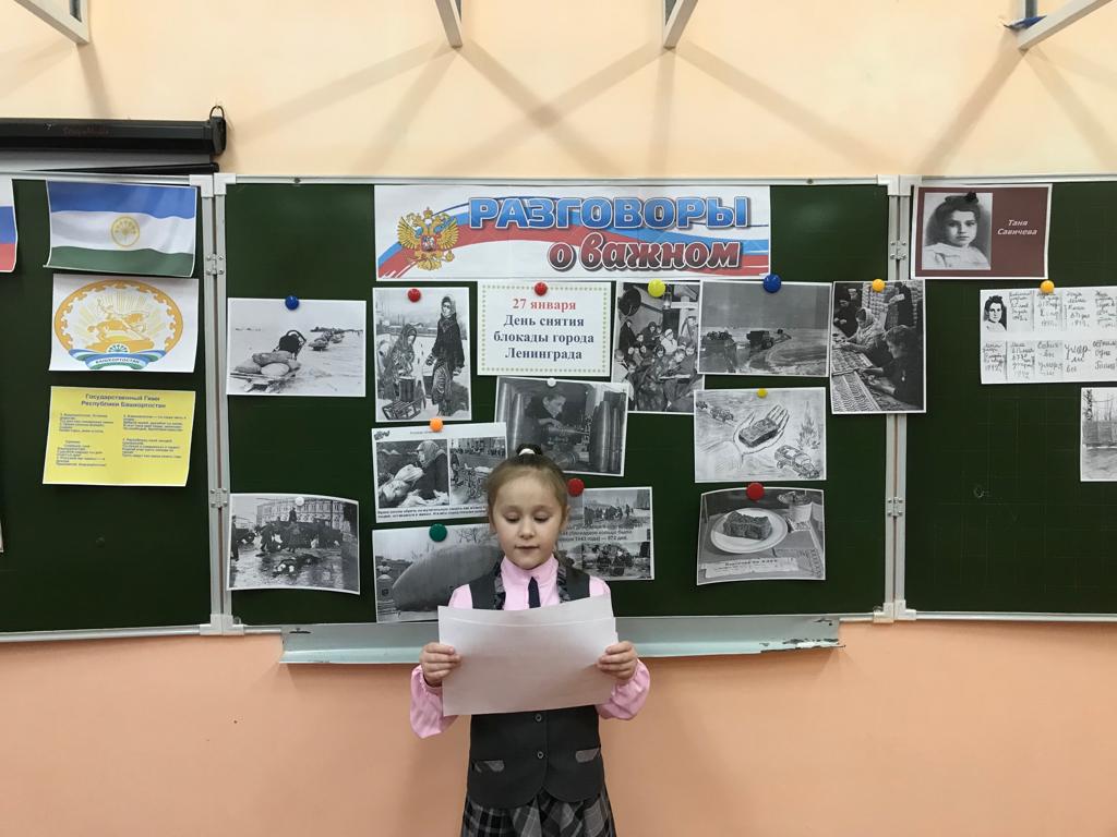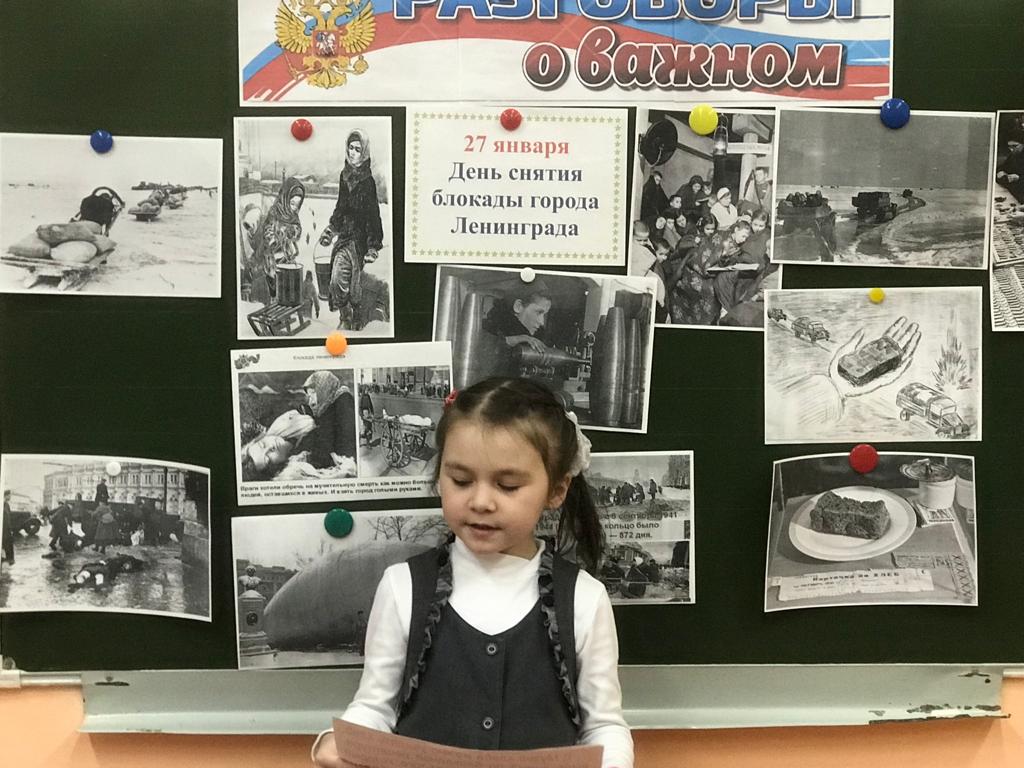 16 января внеурочное занятие "Разговоры о важном" в 1в классе прошло на тему «Прорыв блокады Ленинграда». Обучающиеся вспомнили героические страницы истории – блокаду Ленинграда и ее прорыв, говорили о Ладожском озере — дороге жизни, «ленинградском ломтике хлеба», «блокадной ласточке» - символе надежды на лучшее, на скорую встречу с родными и близкими, познакомились с записями Тани Савичевой, жившей в Ленинграде во время блокады, посмотрели иллюстрации того времени, выполнили задания в рабочих листах.