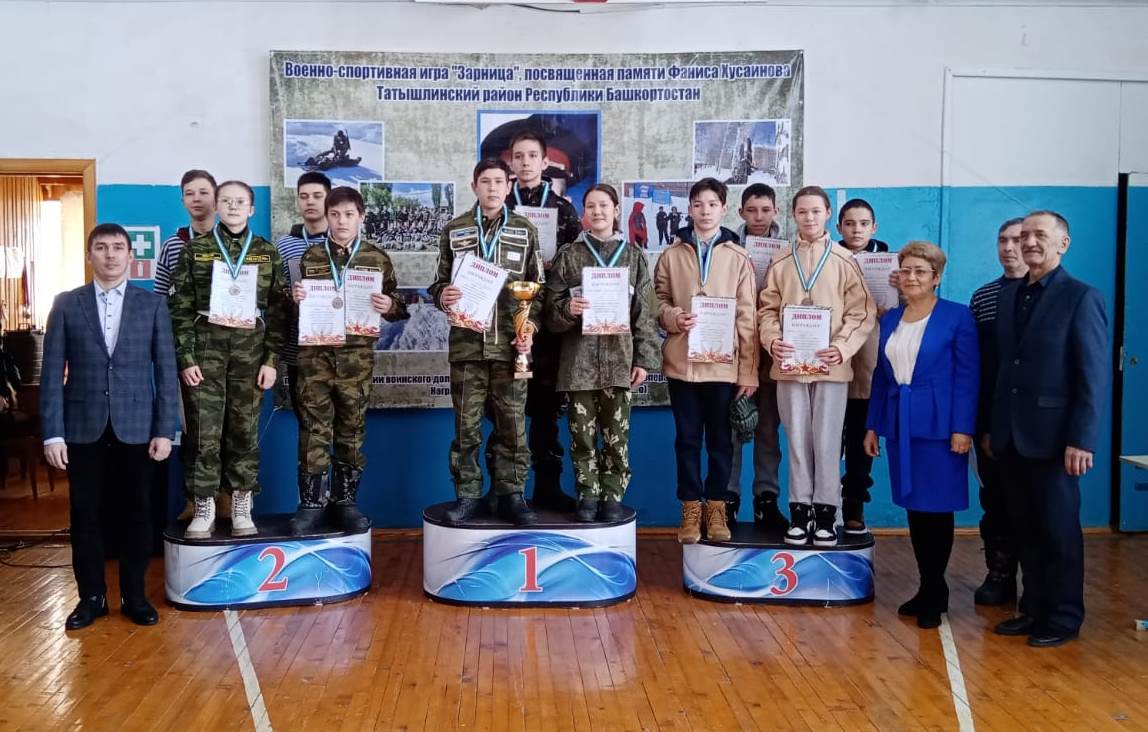 15 февраля в с.Старый Курдым прошла районная военно- спортивная игра «Зарница», посвященная памяти Хусаинова Фаниса, погибшего при выполнении воинских обязанностей в ходе военной специальной операции. Команда МБОУ СОШ№1 с.Верхние Татышлы в составе Салимгараева Аяза, Мавлиевой Чулпан, Нигамаева Наиля и Карамова Ильназа заняли 3 место. Поздравляем наших юных патриотов и желаем им дальнейших достижений и побед!
