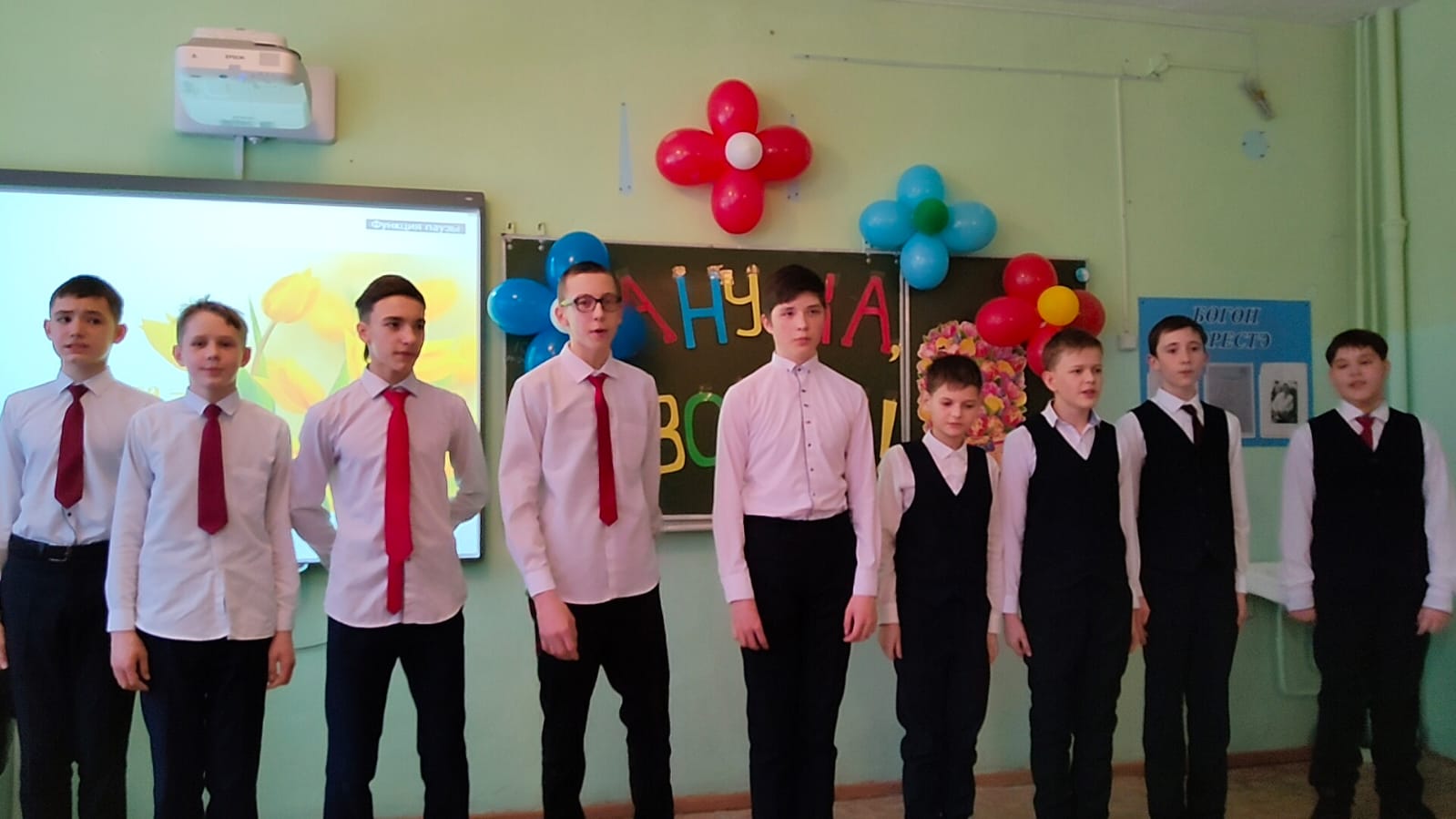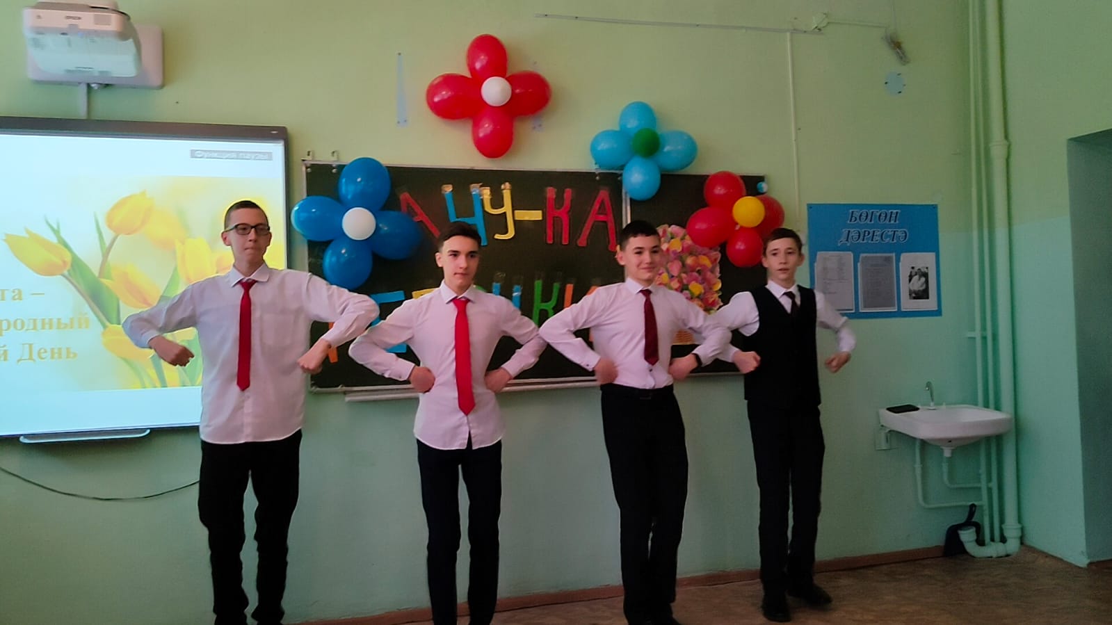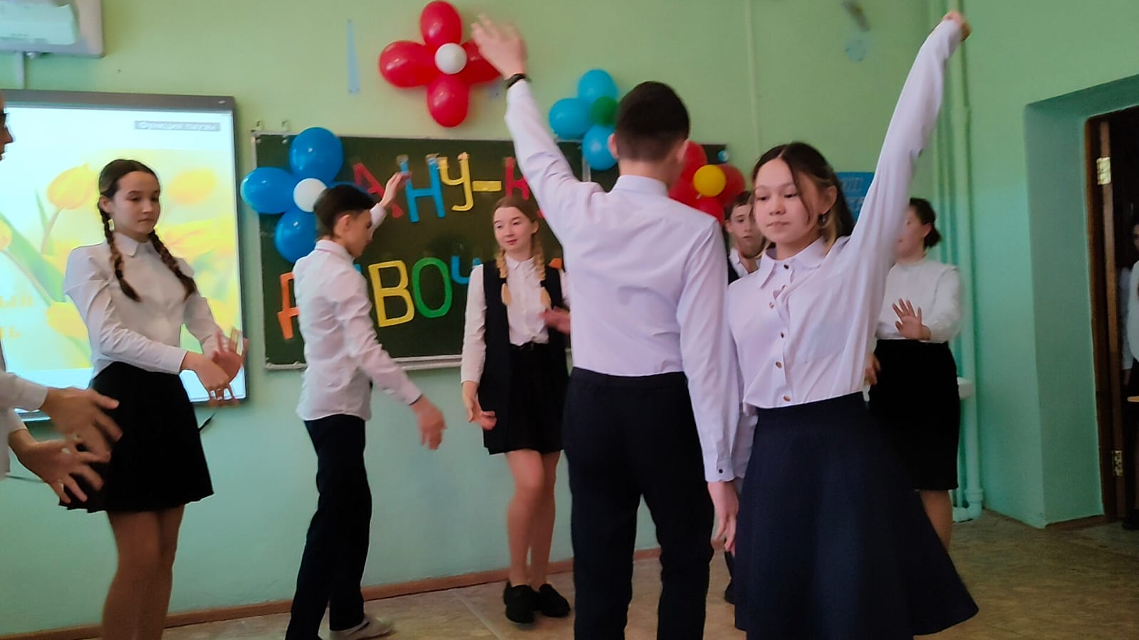 В преддверии праздника в нашей школе прошли праздничные мероприятия, посвященные женскому дню. Обучающиеся 7в класса, подготовили празднично-развлекательную программу «А ну-ка, девочки!» для учащихся 7 классов. Проводили конкурсы, поздравили собравшихся с праздником, подготовили разнообразные номера художественной самодеятельности. Свои таланты проявлять пришлось не только участницам команд, но и их одноклассникам, которые поддерживали своих девчонок, подбадривали их криками, помогали отгадывать сложные загадки, принимали участие в конкурсах. Поздравления, песни, танцы, стихи звучали для учителей и учеников.