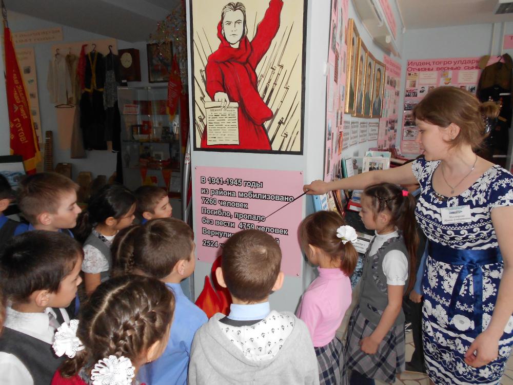 3 мая обучающиеся 1а класса МБОУ СОШ №1 с.Верхние Татышлы посетили районный историко-краеведческий музей. Дети с большим любопытством и интересом осмотрели старинные вещи, орудия труда наших предков. Особенно им понравились школьные формы и парты, за которыми обучались их родители, бабушки и дедушки. Потом ребята были в зале Боевой славы, где представлены фотопортреты героев войны, списки награжденных орденами и медалями. В витринах награды и наградные удостоверения, письма, личные вещи участников войны.
