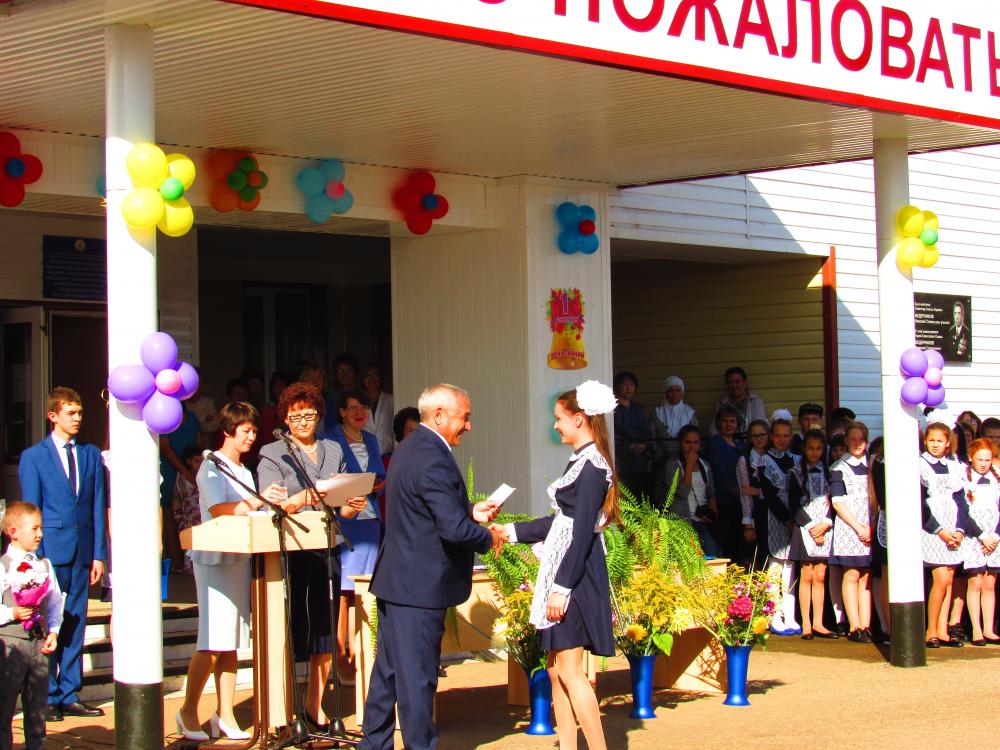 Традиционно 1 сентября в МБОУ СОШ №1 с.Верхние Татышлы проводится торжественная линейка, посвящённая Дню знаний. В этом году школа приняла в свои ряды 93 первоклассника, которым еще предстоит совершить много удивительных открытий по дороге знаний. А для 32 выпускников 11 классов эта линейка – последний важный рубеж перед стартом во взрослую жизнь. На празднике присутствовали глава сельского поселения Верхнетатышлинский сельсовет Ямилев Рамиль Гафурович, директор РЦПИ Отдела образования Рахматуллина Айгуль Назгатовна. Ямилевым Р.Г. были награждены 39 обучающихся - обладатели Гранта Главы Администрации муниципального района Татышлинский район РБ по итогам 2016-2017 уч.года "За особые успехи в учении".
