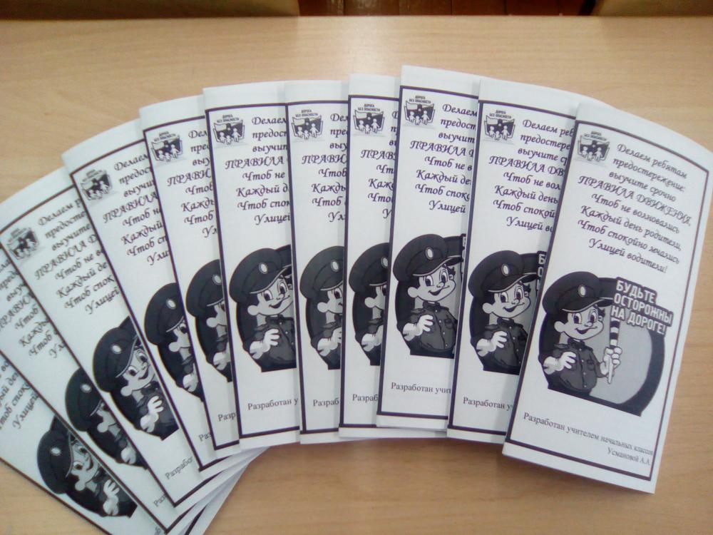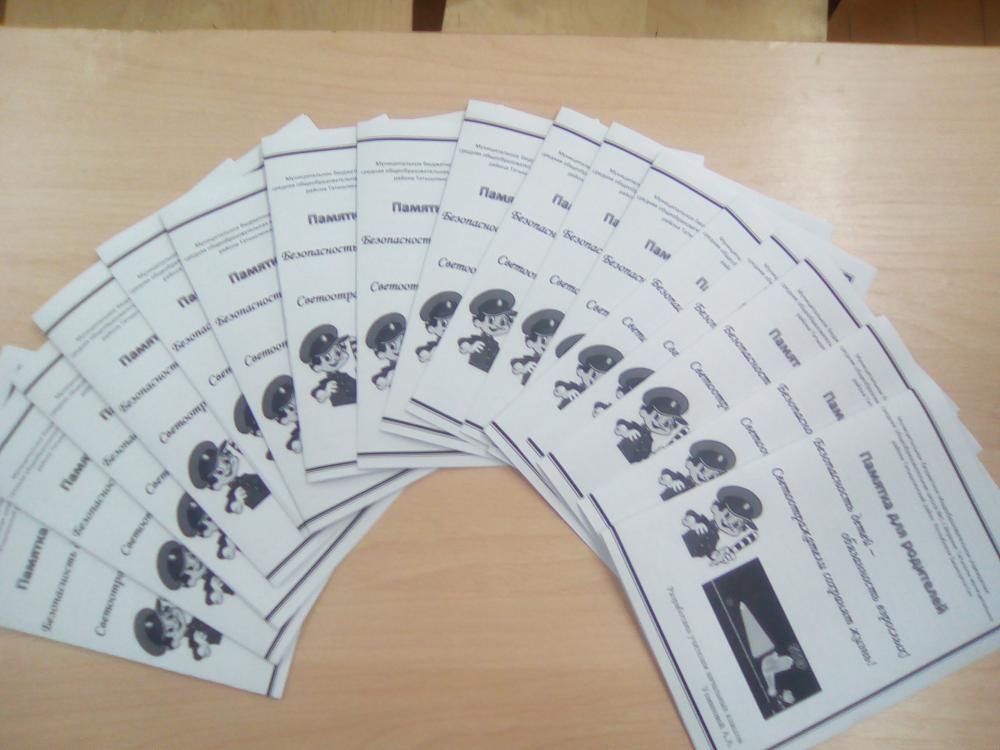 С целью ознакомления родителей с фликерами (световозвращателями) и необходимостью их использования на верхней одежде и ранце детей была разработана памятка для родителей «Безопасность детей – обязанность взрослых! Светоотражатели сохранят жизнь!», а для того, чтобы первоклассники вместе с родителями повторяли правила дорожного движения, был разработан буклет «Будьте осторожны на дороге!».