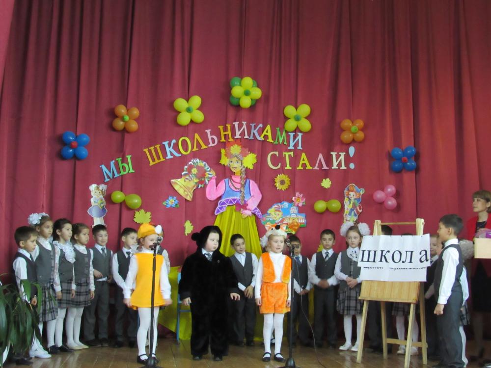 На праздник были приглашены родители, учителя. Мероприятие прошло в театрализованной постановке «Уроки», где первоклассники показали, что они многому научились за эти месяцы учёбы в школе. А самое главное - они нашли друзей и полюбили свою школу. Неожиданно в гости к первоклассникам пришла и Баба Яга со своей внучкой Ягулей (пятиклассники). Они приготовили им испытания, где дети с честью справились с их заданиями. Услышали присутствующие весёлые песни и стихи, участвовали в конкурсах и играх. В конце мероприятия первоклассники дали клятву: быть старательными, воспитанными, стать гордостью школы, родителей и учителей. После всех испытаний им было присвоено звание "Первоклассник". Детям были вручены удостоверения и подарки.