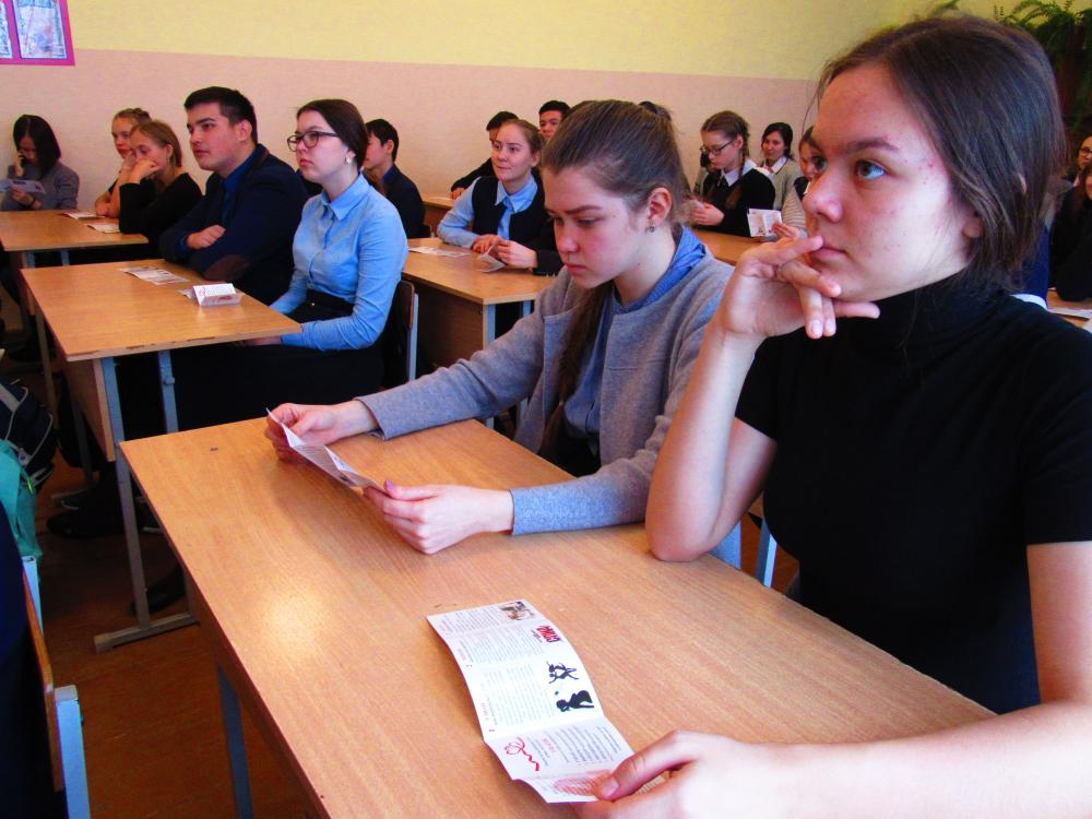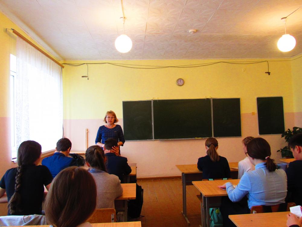 Врач-инфекционист Е.В. Султанова рассказала обучающимся 9 классов о профилактике ВИЧ-инфекции и СПИДа. Пути заражения и признаки заболевания ВИЧ – эти и другие темы были затронуты в ходе беседы. Были озвучены и статистические данные заболеваемости СПИДом по району и в целом по стране. Было подчёркнуто, что люди, ведущие здоровый образ жизни и ответственные за свое поведение и здоровье, не заболевают СПИДом, что каждый молодой человек должен осознать необходимость активной заботы о своем здоровье и о здоровье других