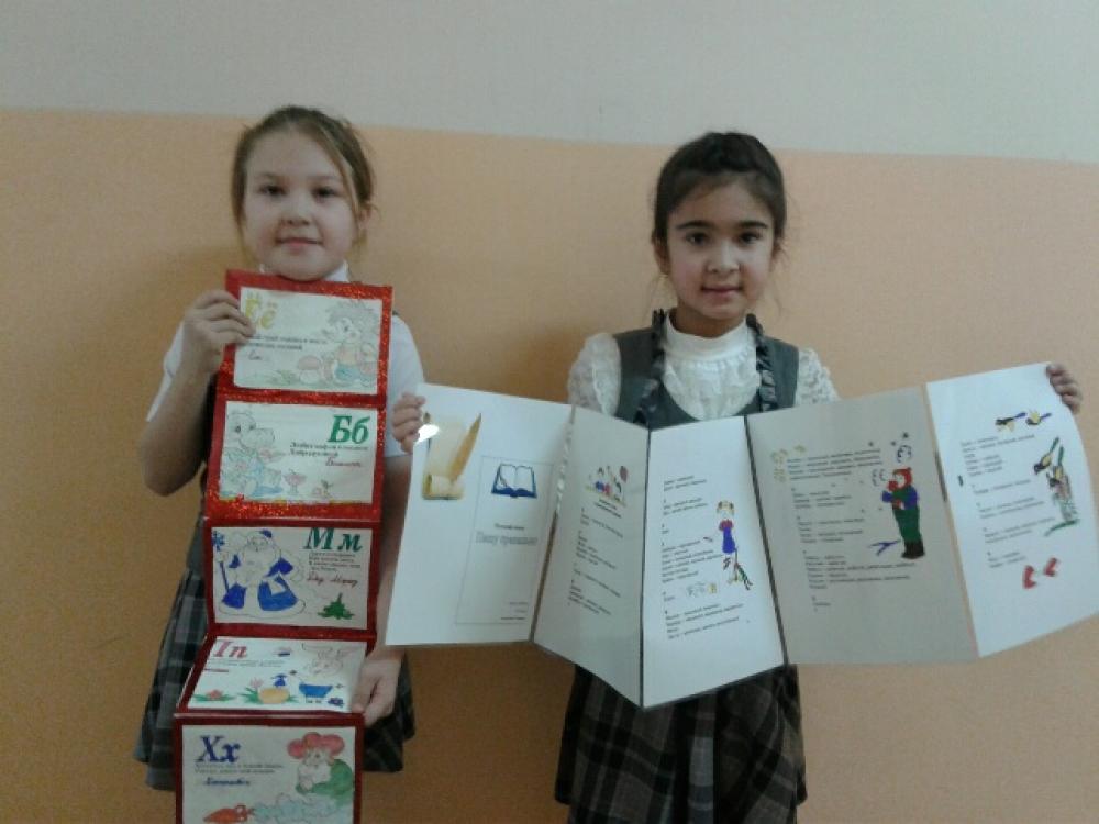 Первоклассники участвовали в конкурсе рисунков "Оживи букву". Второклассники и третьеклассники изготовили своими руками книжки-малышки "Орфографический словарь" и "Фразеологизмы". А четвероклассники выпустили стенгазеты "Веселая грамматика". Обучающиеся приняли участие в школьной олимпиаде по русскому языку. Также были определены лучшие тетради по русскому языку.