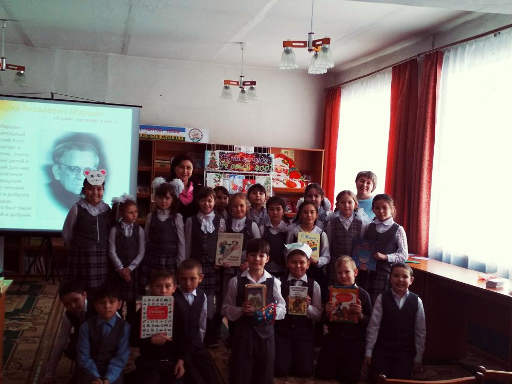 Любовь к чтению объединяет разных людей. А чаще всего они встречаются в библиотеке. Так, в модельной библиотеке встретились обучающиеся начальных классов двух школ с.Верхние Татышлы. Учащиеся 3а класса МБОУ СОШ№1 подготовили мероприятие «В гости к С.Я.Маршаку», посвященное 130-летию поэта, и пригласили в гости в качестве участников учащихся 4 класса МБОУ СОШ №2.
