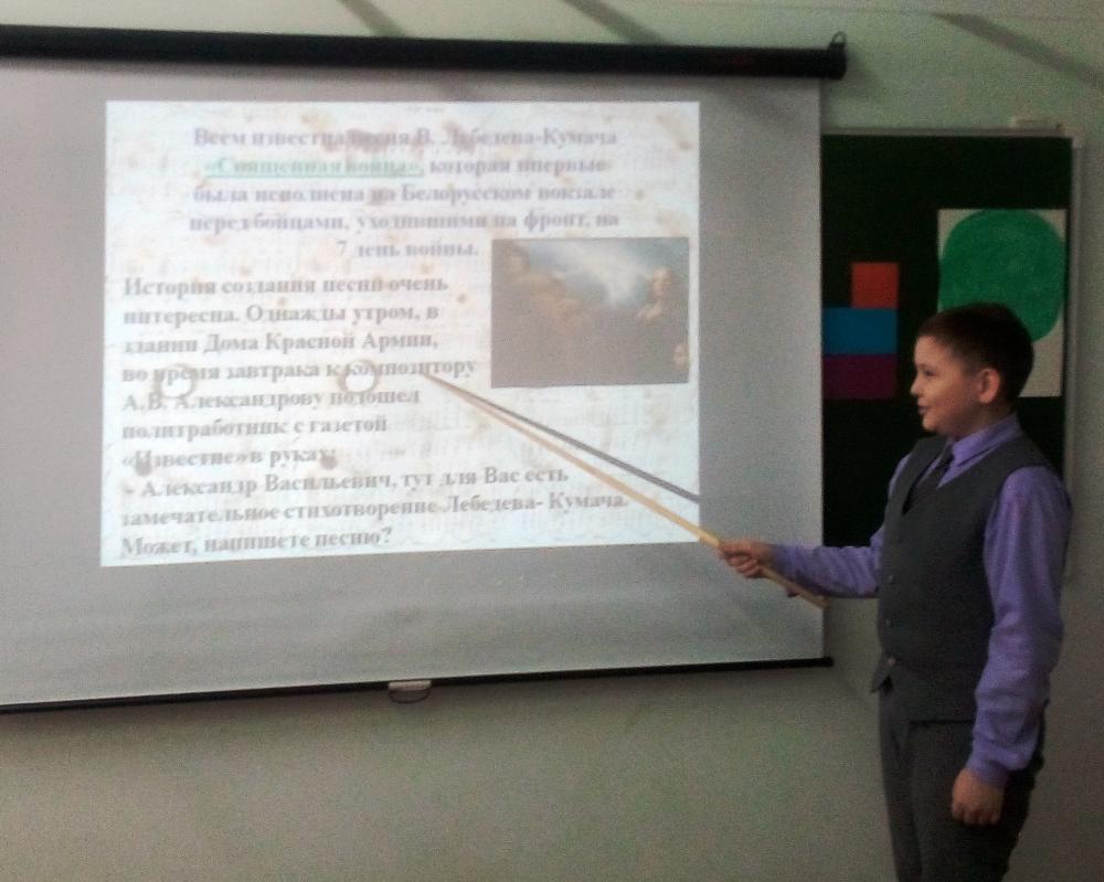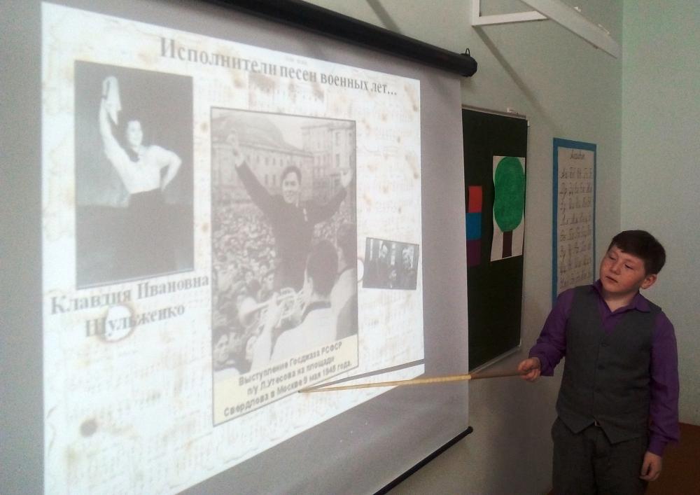 В МБОУ СОШ №1 с.Верхние Татышлы продолжается месячник оборонно – массовой, спортивной работы и патриотического воспитания. Обучающиеся 4а, 2г, 3а классов под руководством учителя музыки Л.Р. Фатхуллиной провели уроки мужества по теме «Песни военных лет». Да, порой только песня с ее жизненным текстом и музыкой поддерживала солдат. Ученики узнавали об истории создания военных песен. Например, их очень взволновала песня «Священная война», которая впервые была исполнена на Белорусском вокзале перед бойцами, уходившими на фронт, на 7-й день войны. Дети внимательно слушали и следующую историю: однажды один полк находился в окружении врага и солдаты ловили по радио информацию, поймали какую - то немецкую станцию. Фашисты на русском языке трубили, что находятся уже под самой Москвой, видят ее в бинокли, готовят тяжелые пушки, чтобы вести обстрел столицы, а потом начнут генеральную атаку. Бойцы тогда приуныли. Но потом они поймали передачу из Москвы. Сообщали о том, что идут тяжелые бои, что город отражает атаки врага. Затем услышали песню Леонида Утесова «Два друга». Это сразу оживило людей, все заулыбались. Раз поет Утесов, говорили они, значит, столица стоит, будем скорее отбиваться из окружения. И бойцы вырвались из кольца окружения. Война шла пять лет и каждый год рождала все новые песни. Они воспитывали ненависть к врагу, воспевали Родину, мужество, отвагу, боевую дружбу - все то, что помогало преодолеть военные трудности. Ученики активно анализировали следующие песни: «В землянке», «Огонек», «Темная ночь», «Жди меня», «Эх, дороги», «Нам нужна одна победа». Как только прозвучали ритмы песен «Катюша», «Три танкиста», дети дружно поддерживали их своим вдохновением, глубокими и гордыми чувствами, отличными исполнениями. Мальчики и девочки познакомились и с современными песнями об отваге и чести. Ребята даже не удержались и двигались под ритмы песни «Десант – отвага и честь». Да, музыка во все времена остается музыкой вдохновения для души и сердца. Ученики раскрывали свои умения мыслить, выступать перед одноклассниками, любить свою Родину.