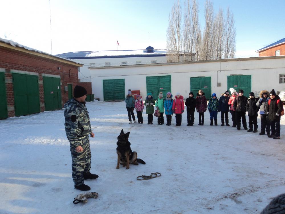 У дверей здания детей радушно встретил кинолог Ганиев Ильшат Ильгизович. Он рассказал о трудностях, большой ответственности и престиже профессии полицейского. Показал современное вооружение, которым экипируется полицейский, выходя на свое дежурство, защищая жизнь граждан.