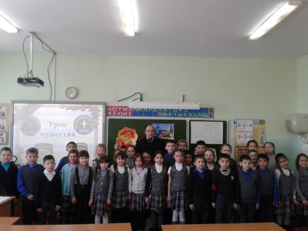 В рамках месячника военно-патриотического воспитания, оборонно-массовой и спортивной работы во 2а и 2в классах учителя И.Р. Нургалиева и Г.М.Лутфиева провели Урок мужества, на который был приглашен сотрудник полиции М.А.Арсланов. Марат Адипович рассказал о профессии полицейского. Ребята узнали о том, какими качествами должен обладать правозащитник, и получили исчерпывающие ответы на свои вопросы. Обучающиеся получили представление о мужестве, ответственности, нравственности и патриотизме. Дети поздравили гостя с наступающим праздником и пожелали здоровья, удачи и успехов в нелегкой работе.