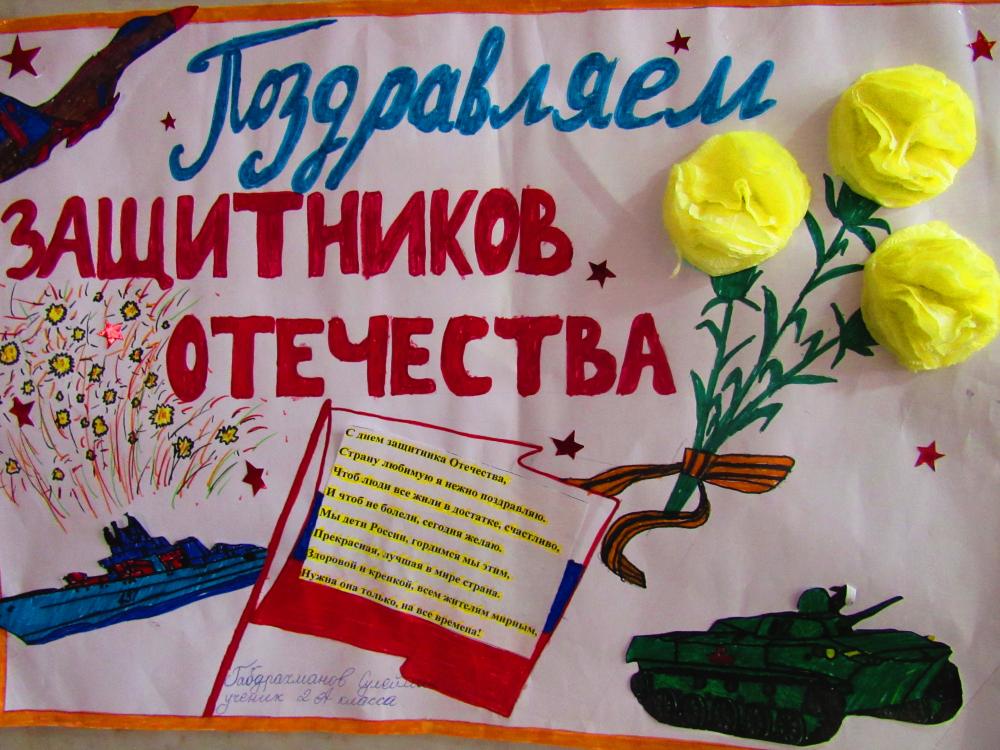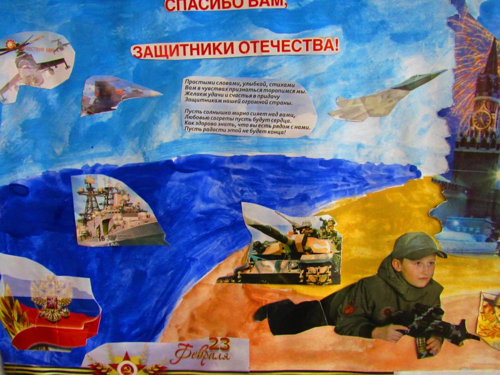 Испокон веков Россия славилась сильными и мужественными людьми, готовыми оберегать и защищать свою Родину. А наша задача - сохранить память о воинской доблести и героизме дедов и отцов, на примерах их подвигов воспитать благородство, решительность, смелость. Члены Совета дружины объявили конкурс рисунков «На страже Родины» среди 1-8 классов. И в преддверии праздника была проведена выставка, где обучающиеся начальных классов приняли активное участие. Техника выполнения рисунков была разная: рисовали цветными карандашами, фломастерами, красками. Все работы были оценены и награждены грамотами.