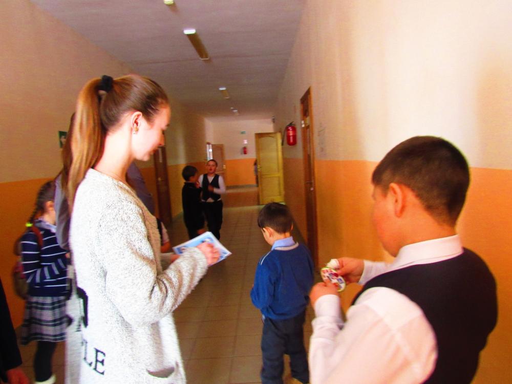 Юные помощники инспекторов движения прошлись по всем классам начального корпуса, вручили эмблемы с ЮИД и повторили азы Правил Дорожного Движения.