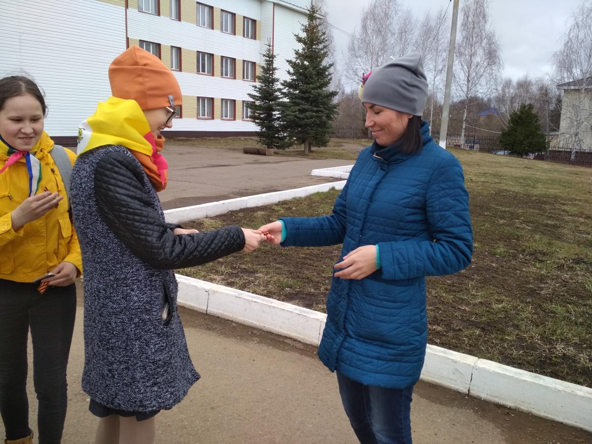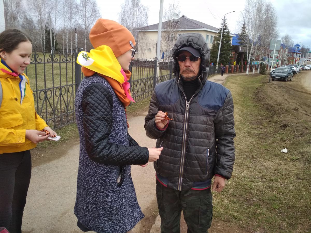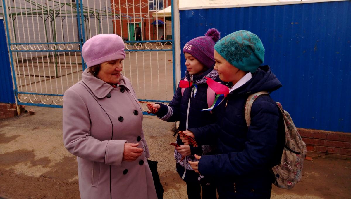 В акции активное участие приняли обучающиеся 6а, 6б и 6в классов. Сами изготовили ленточки и поздравили прохожих с праздником Великой Победы.