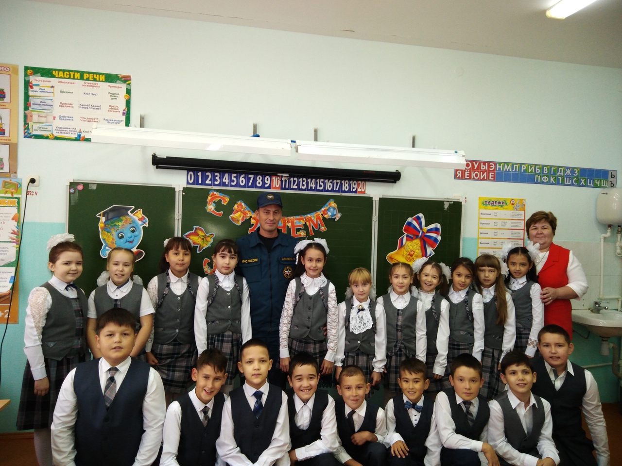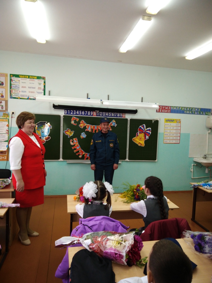 2 сентября в День знаний в 3в и 4б классах прошли Всероссийские открытые уроки по основам безопасности жизнедеятельности. Основная цель проведения открытых уроков – напомнить ребятам после школьных каникул о правильных действиях при угрозе и возникновении чрезвычайных ситуаций. Напомнить школьникам правила безопасности при различных ситуациях, которые могут возникнуть как на улице, так и в быту пришел командир отделения ПСЧ-91 Валиахметов Р.Ф. Особое внимание в беседе с детьми он уделил вопросам пожарной безопасности. Сотрудник пожарной части рассказал ребятам как правильно эвакуироваться из горящего здания, ознакомил с правилами поведения при пожаре, в местах массового скопления людей, при использовании электроприборов и при обнаружении подозрительного предмета, а также напомнил номера телефонов экстренных служб. В конце профилактической беседы школьники получили доброе напутствие от сотрудника ПСЧ и поздравления с началом нового учебного года.