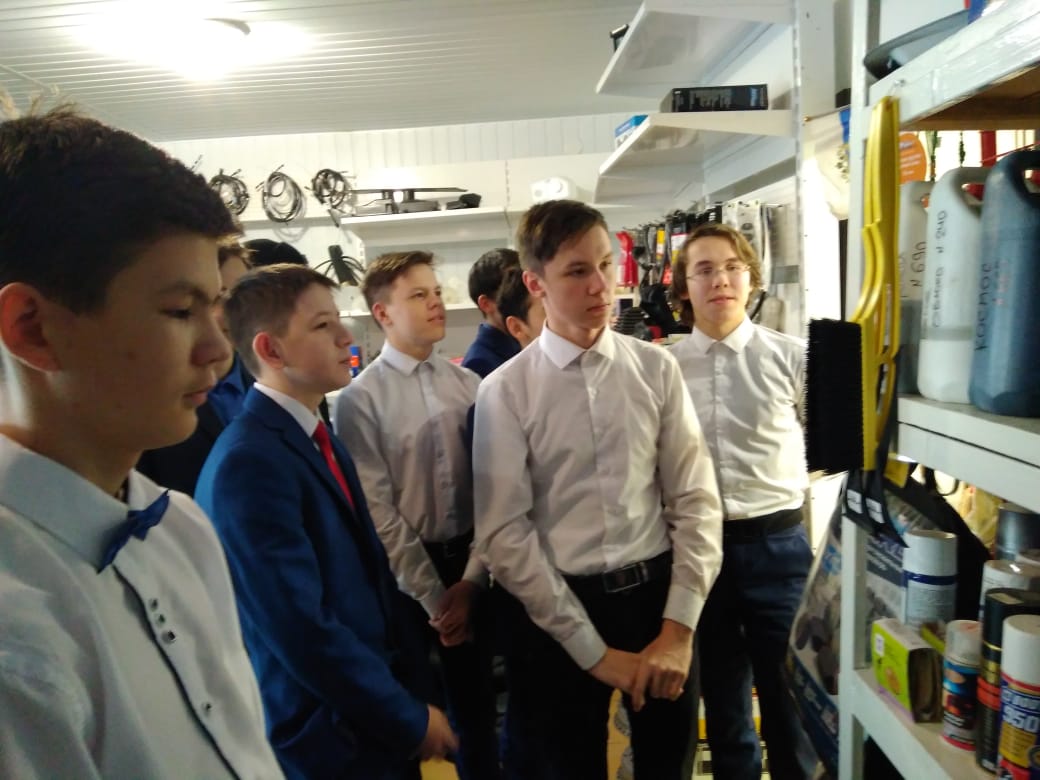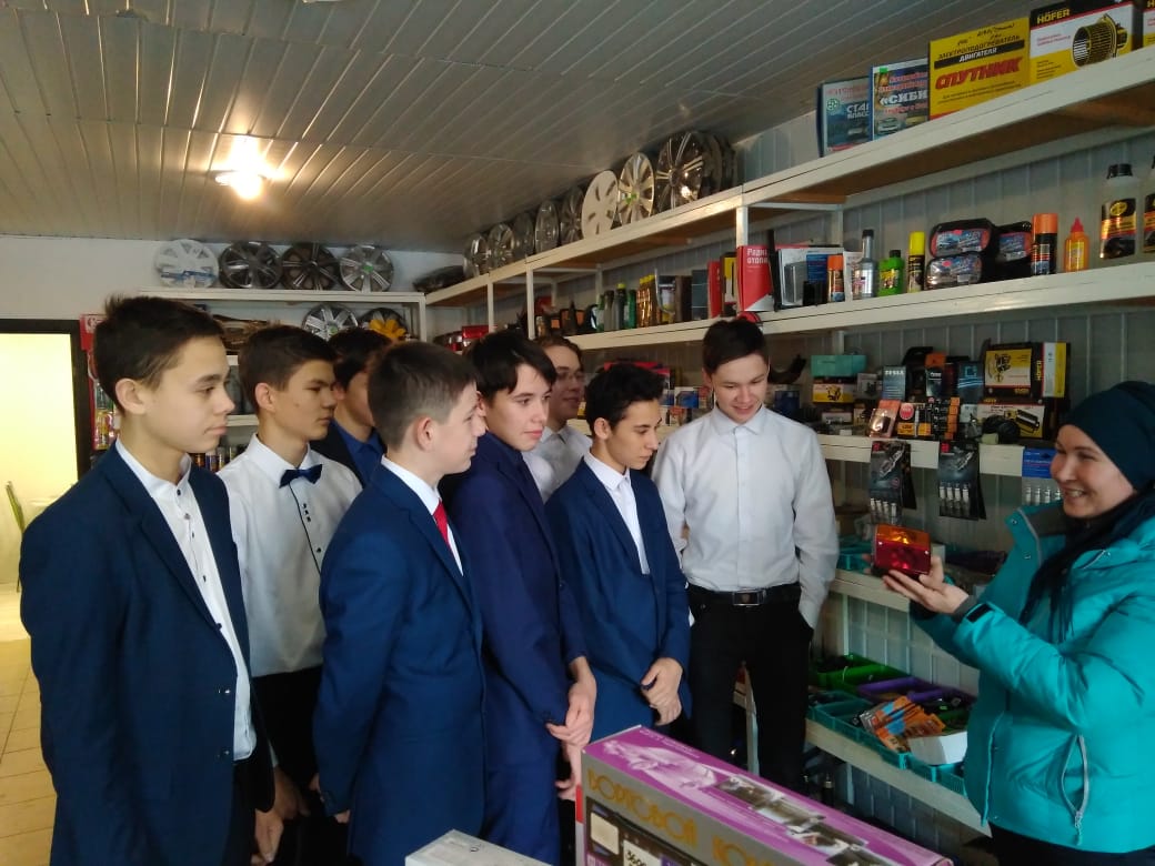 С целью формирования готовности обучающихся к профессиональному самоопределению и расширения круга мировоззрения в профессиональном плане, на основании плана мероприятий по профориентации юноши 9в класса посетили магазин «Автозапчасти». Индивидуальный предприниматель Идиятуллина Айсылу рассказала ребятам о работе с клиентами, о запросах рынка, об открытии в этом же магазине салона парикмахерской и массажной комнаты, о поддержке со стороны государством предпринимателей.
