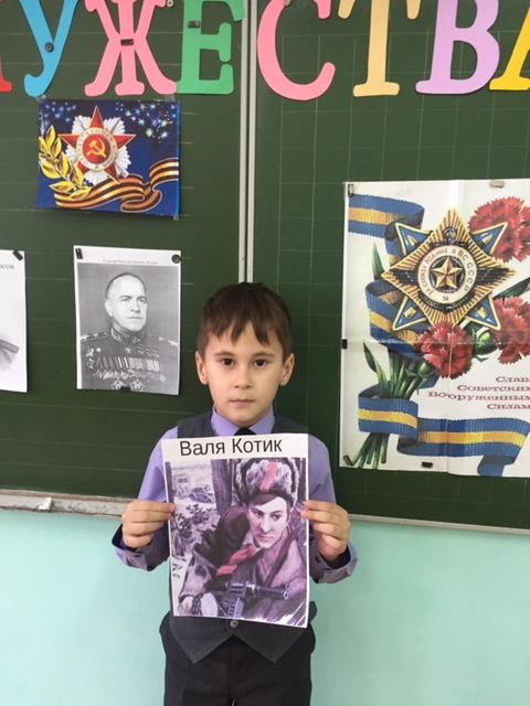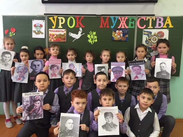 К этому уроки дети подготовили сообщения о героях Советского Союза, а также о своих сверстниках, совершивших подвиги во время Великой Отечественной войны.Урок сопровождался прослушиванием песен военных лет.