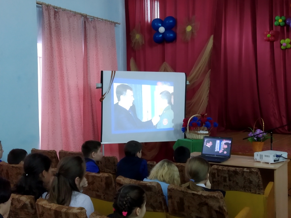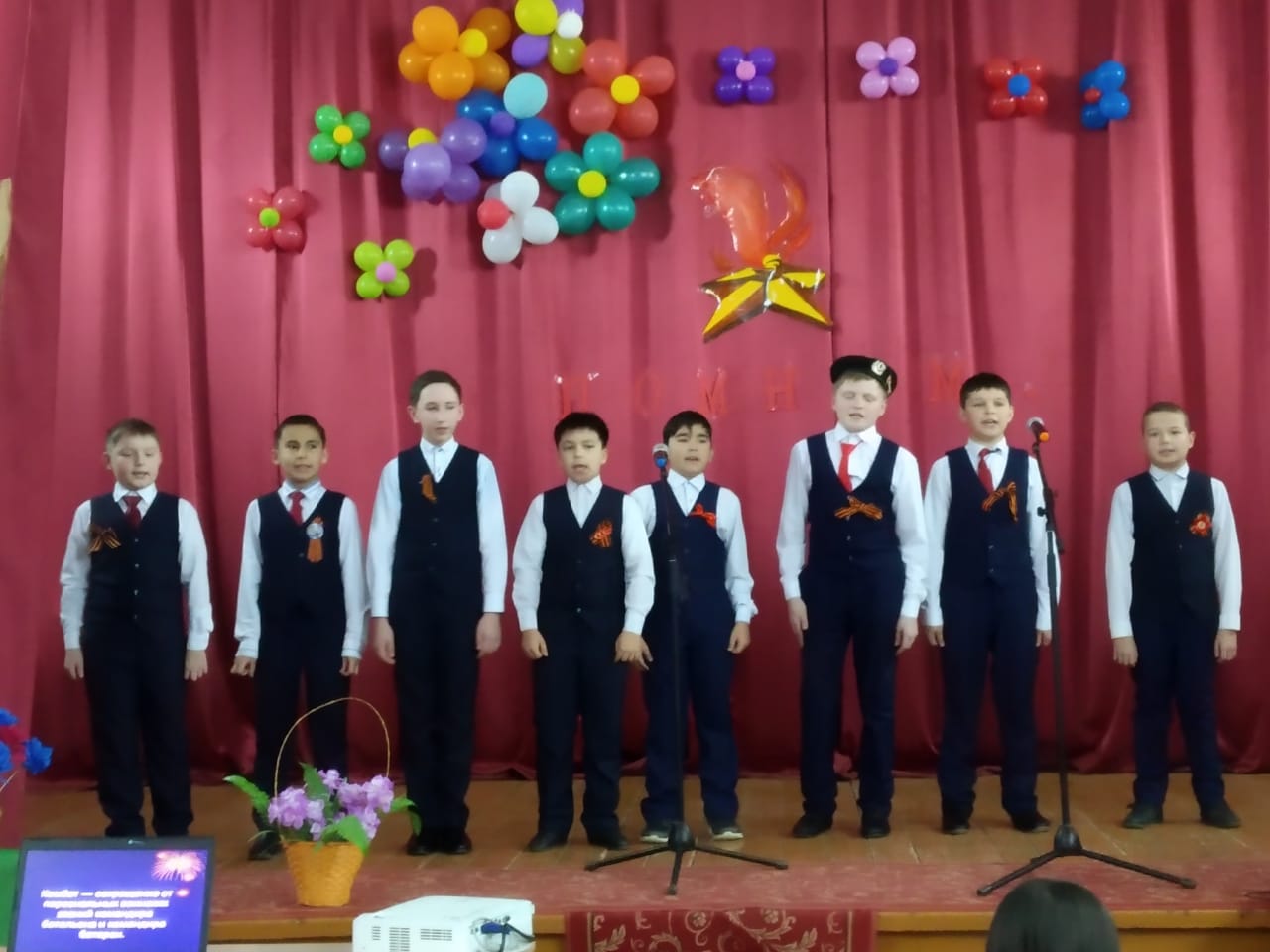 Обучающиеся 5б класса представили литературную композицию «Письмо с фронта», исполнили популярные песни «Кукушка», «Комбат». Зрители узнали о современных Героях России, таких как Дамир Юсупов, Сергей Мыльников. Почтили память Героев Советского Союза, наших земляков Саитова Г.С., Хайдарова А.С., Ведерникова Н.С., Бадрутдинова М.Б. Мы должны гордиться земляками, прошедшими пекло войн.