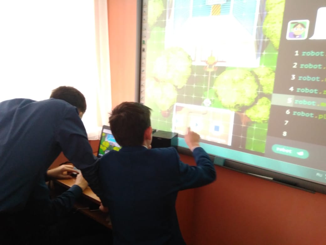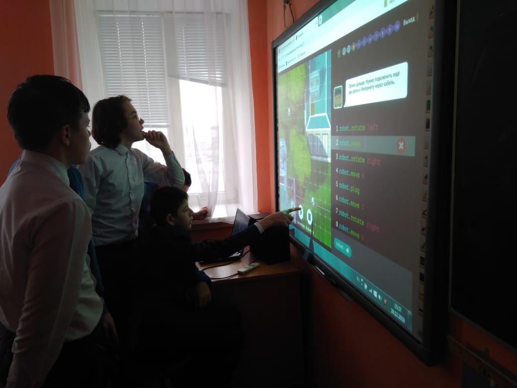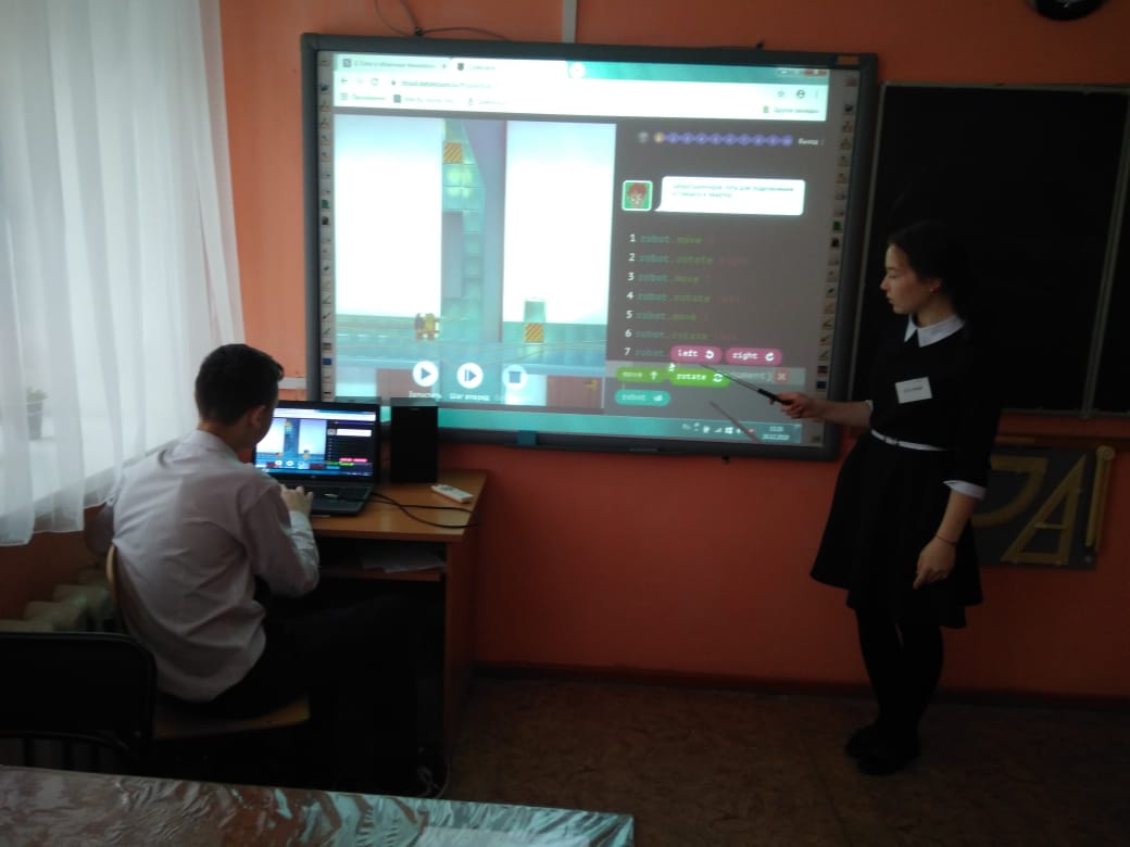 В онлайн - тренажёре «Попробуй свои силы на «Уроке Цифры» тренировались в прокладке сетей и диагностике серверов при помощи программируемого робота. Тренажер «Уровень для закаленных профессионалов» для 8 – 11 классов. Ребята увлеченно решали поставленные перед ним задачи, составляли программы, находили пути решения.