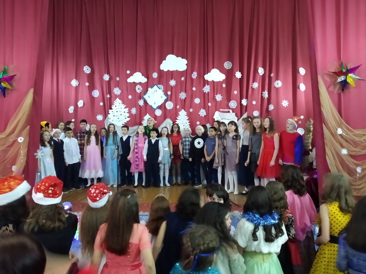 Новый год — самый любимый, добрый, сказочный праздник, который ждут в каждом доме, в каждой семье. Новый год - всегда ожидание чуда, волшебных превращений, приключений и удивительных перемен. Люди в Новый год становятся добрее и счастливее. В волшебную ночь у сверкающих огнями ёлок все веселятся и загадывают желания. Именно поэтому в МБОУ СОШ №1 с.Верхние Татышлы к проведению новогодних утренников особое отношение. 24-27 декабря были проведены новогодние утренники под руководством классных руководителей 7а и 7б классов Галямшиной Л.М. и Миннигалиевой Г.Д. для обучающихся 4-6 классов. Дети пришли на представление нарядные, веселые в предвкушении праздника. И их надежды оправдались. Ученики 7а и 7б классов, участвовавшие в новогоднем представлении, проявили себя хорошими артистами, показав все свое творческое мастерство, артистизм, задор и организаторские способности. Дед Мороз никого не оставил без внимания и подарков!