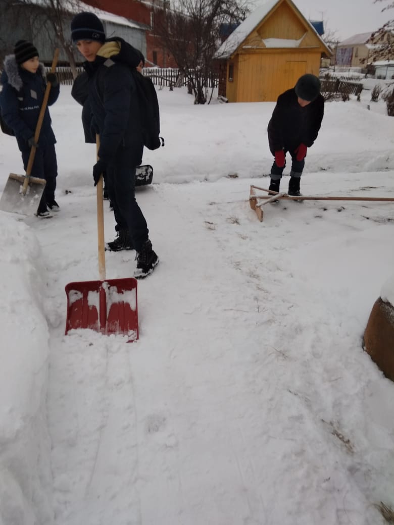 В рамках волонтерской тематической субботы обучающиеся 6г класса МБОУ СОШ №1 с.Верхние Татышлы посетили своих подшефных учителей-ветеранов. Ребята помогли им по хозяйству, очистили территорию дома от снега.
