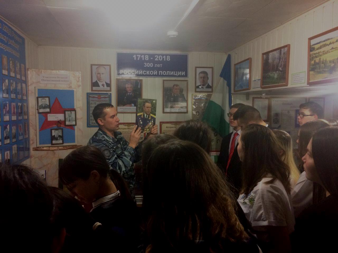 В рамках месячника по военно-патриотическому воспитанию обучающихся, оборонно-массовой и спортивной работы для обучающихся 10а и 10б классов была организована экскурсия в музей истории Отдела МВД России по Татышлинскому району РБ.