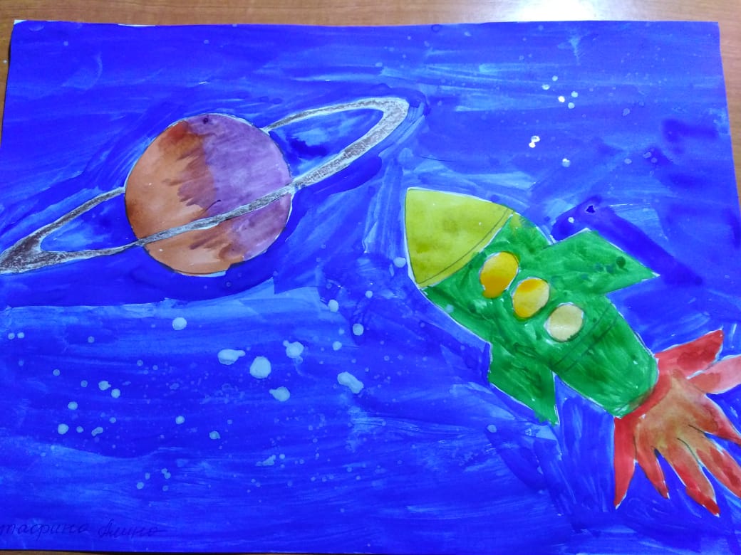 Далее дети приняли активное участие в конкурсе рисунков ко Дню космонавтики.