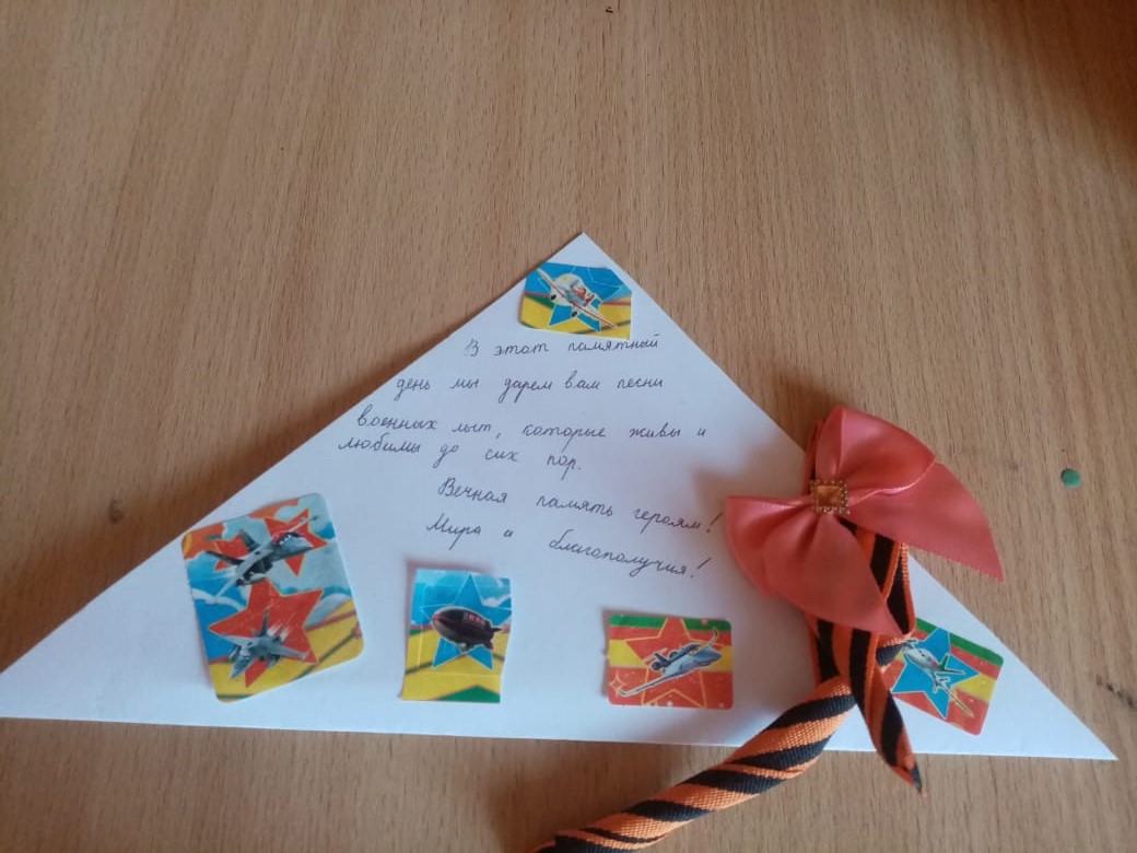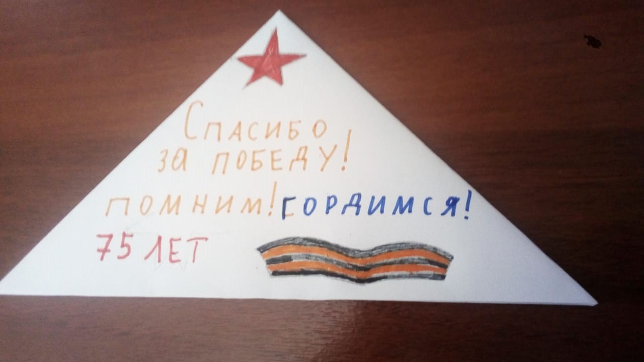 Война – тяжелое и жестокое испытание для человека. Что помогало выжить, выдержать, вступить в яростный, непримиримый бой со всем? Письма, треугольные солдатские письма. В Великую Отечественную войну они были редкими и долгожданными. Связь с домом, уверенность, что ты защищаешь свою семью, что тебя ждут, давала силы воевать и верить в победу. О таких фронтовых письмах, об их истории появления узнали обучающиеся 4а класса МБОУ СОШ №1 на онлайн-уроке. Затем ребята написали письма благодарности ветеранам-фронтовикам, научились их складывать в треугольник и красиво оформили.