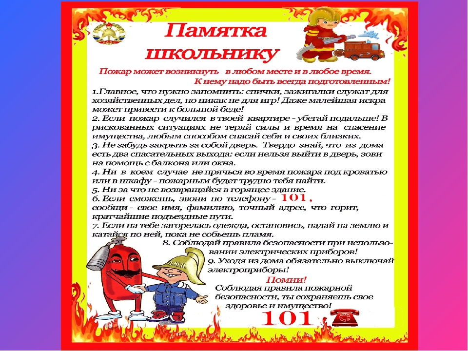 систематизировать знания учащихся о причинах и последствиях пожара;