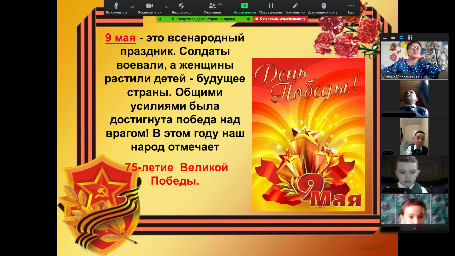 День знаний 1 сентября для обучающихся 2-8, 10 классов прошел в дистанционном формате. Для них Глава Республики Башкортостан Радий Фаритович Хабиров провел первый открытый урок в новом учебном году. Руководитель региона поздравил детей, родителей и педагогов с праздником. Также обучающиеся приняли участие во Всероссийском открытом онлайн - уроке «Помнить - значит знать», посвященном 75-летию Победы в Великой Отечественной войне 1941-1945 гг.