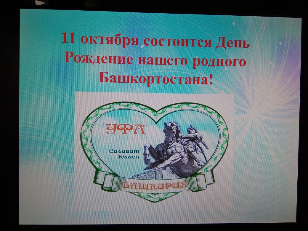 11 октября наша республика отмечает главный свой праздник - День Республики Башкортостан. В рамках празднования Дня Республики классным руководителем Авхадиевой А.Х. на классном часе проведена беседа с учащимися 11 А класса: «День суверенитета РБ».