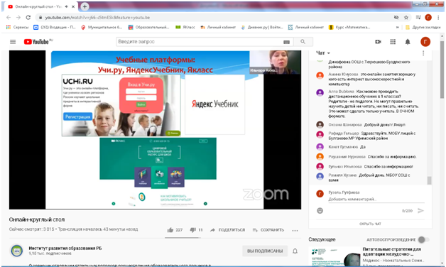 22 октября Институтом развития образования Республики Башкортостан совместно Министерством образования и науки Республики Башкортостан в рамках «Методических осенних каникул» был организован онлайн-круглый стол на тему «О совершенствовании отдельных вопросов осуществления образовательного процесса в начальной школе в условиях дистанционного обучения.