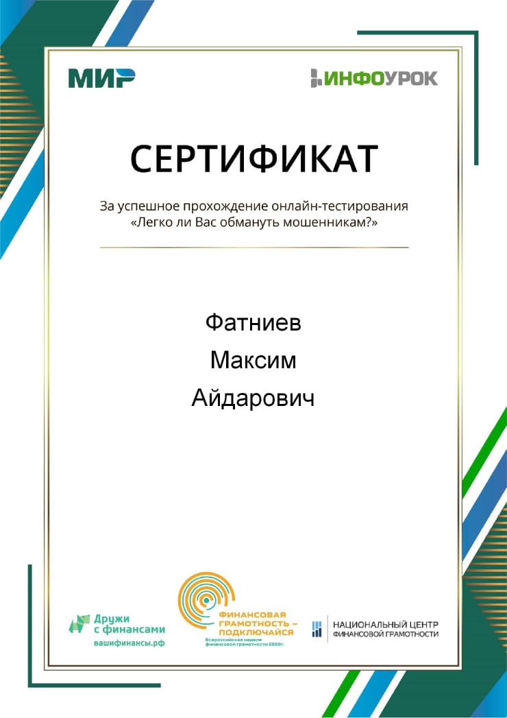 Что такое инфляция? Что нужно знать про инфляцию? «Финансовые инструменты и стратегии инвестирования», «Пять простых правил, чтобы не иметь проблем с долгами», «С деньгами на «Ты» или зачем быть финансово грамотными». Ребята с интересом прослушали онлайн-лекции по этой тематике, откуда почерпнули много новой информации. Многие прошли онлайн-тест «Легко ли Вас обмануть мошенникам?» и за успешное прохождение были отмечены сертификатами.