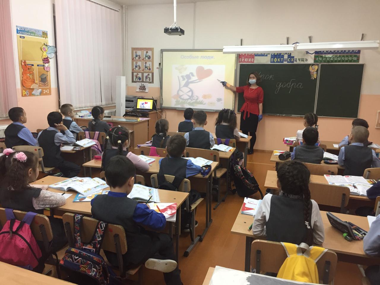 В целях воспитания нравственных чувств и качеств, формирования уважительного отношения к людям с ограниченными возможностями, в 1в классе МБОУ СОШ №1 с.Верхние Татышлы был проведен классный час, посвящённый Международному дню инвалидов.