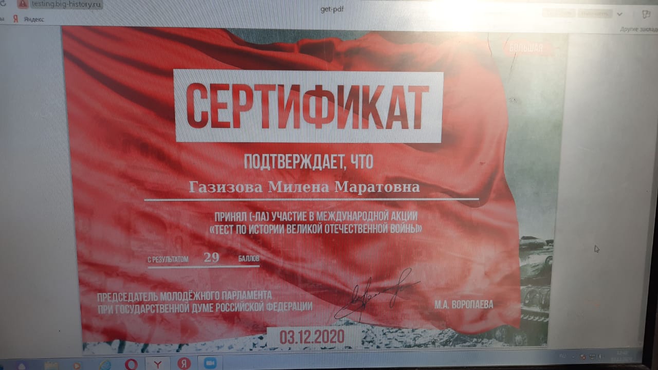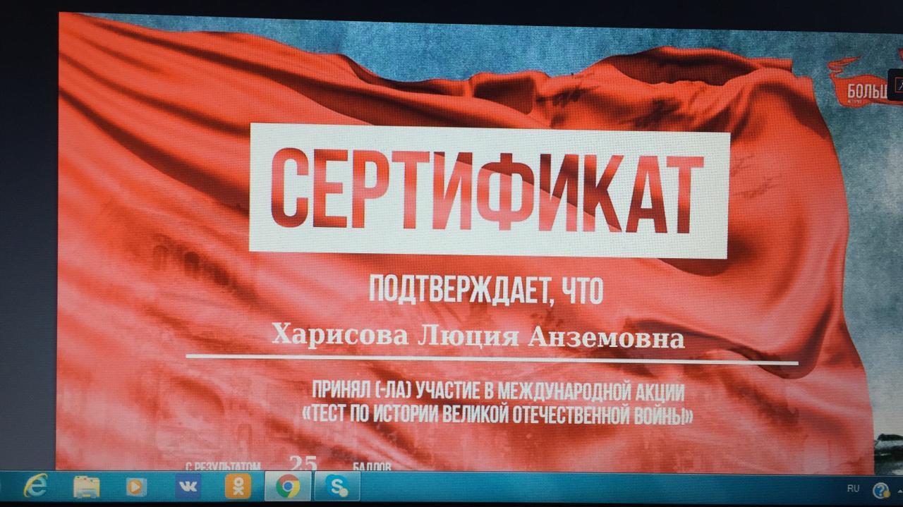 Тест проходил в онлайн - формате. По окончании теста все участники получили сертификат об участии и посмотрели фильм, созданный Молодежным парламентом «Неизвестный солдат».