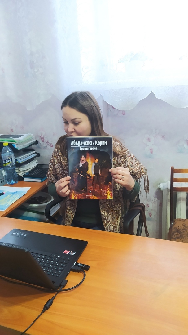 17 декабря в рамках Дня башкирского языка в Межпоселенческой центральной библиотеке для обучающихся 9а класса МБОУ СОШ №1 с.Верхние Татышлы (учитель истории Шарафисламова Д.Р.) была проведена онлайн- презентация комикса «Абдул – Азиз и Карим: Время героев», посвященного 130-летию со дня рождения Карима Хакимова.