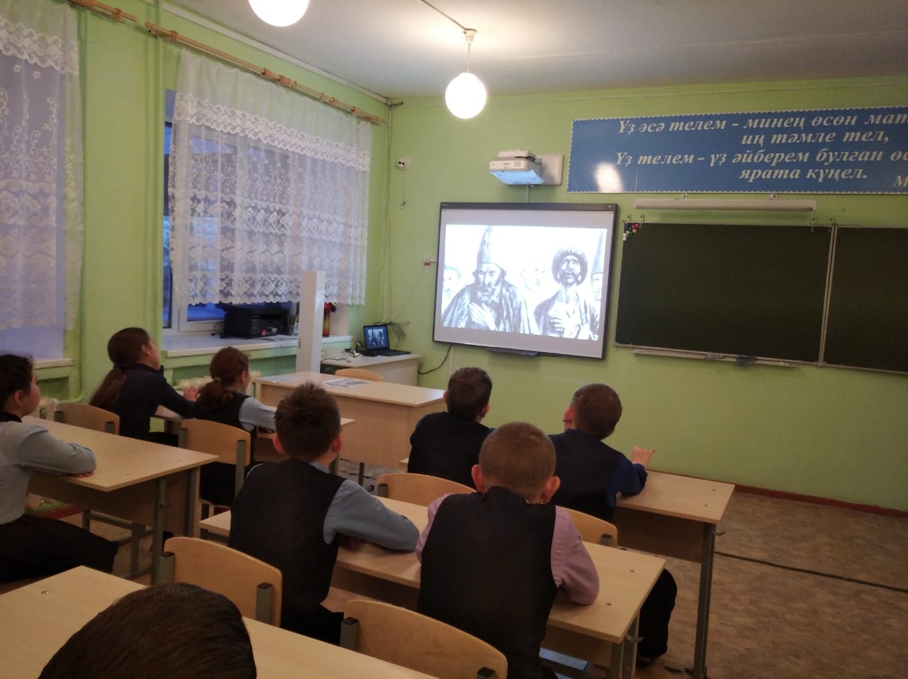 В ходе классного часа учащиеся ознакомились с биографией и творчеством земляка. Посмотрели документальный фильм «Личность в башкирской истории».