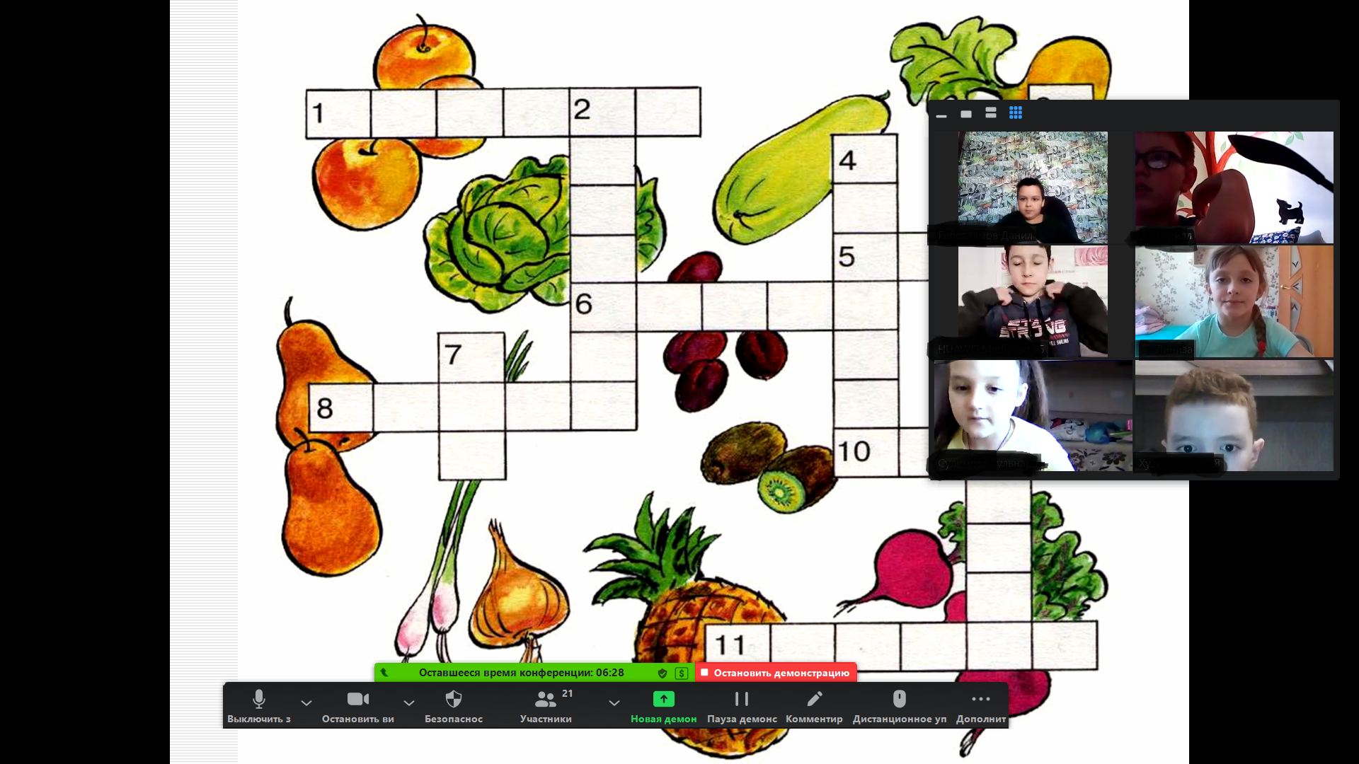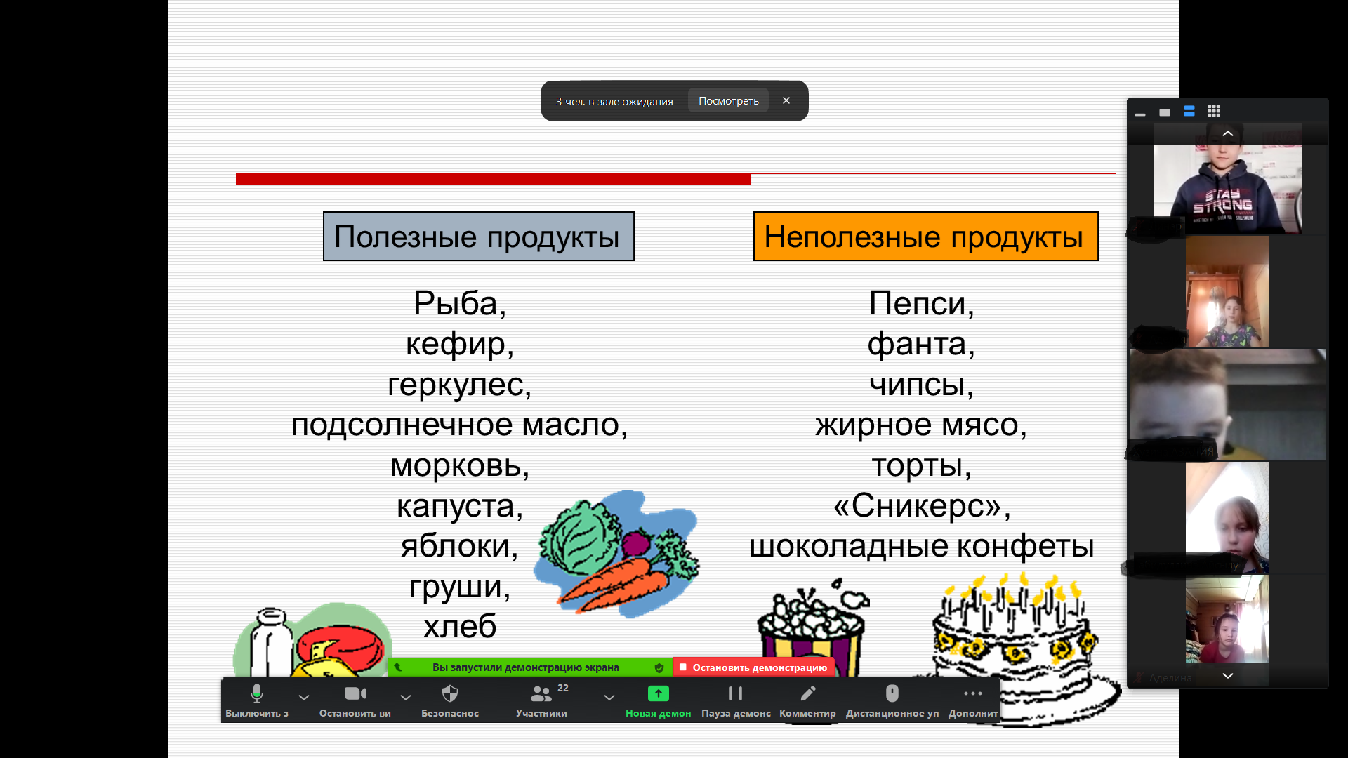 Ребята рассказали о том, что такое здоровый образ жизни, режим дня. Затем разгадывали кроссворд, делили продукты на полезные и неполезные.