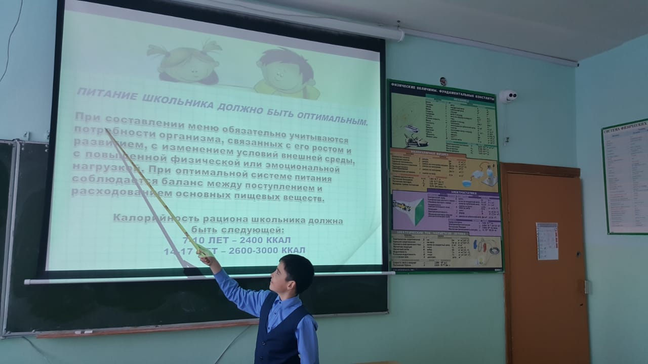 24 февраля в рамках Единого республиканского дня открытых дверей «Родители Башкортостана за здоровое питание!» в 5а классе МБОУ СОШ №1с.Верхние Татышлы был проведен классный час на тему « Мое правильное меню». В ходе классного часа говорили, каким должен быть режим питания школьника, как с помощью правильного питания сберечь свое здоровье.
