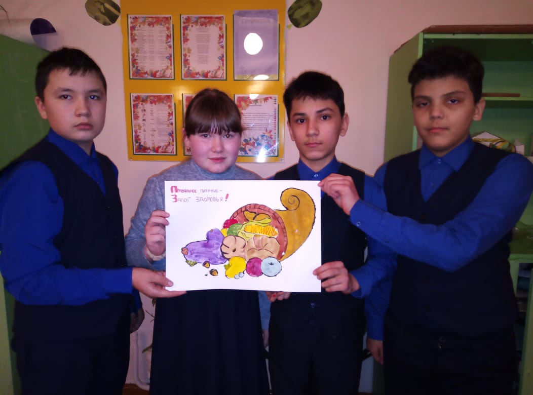 В рамках Единого республиканского дня открытых дверей «Родители Башкортостана за здоровое питание!» обучающиеся 7б класса МБОУ СОШ №1 с.Верхние Татышлы рисовали плакаты на тему "Правильное питание - залог здоровья".