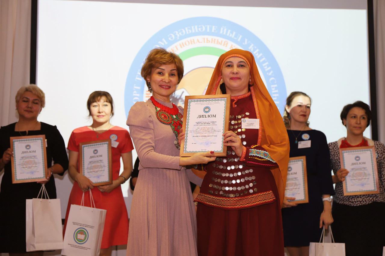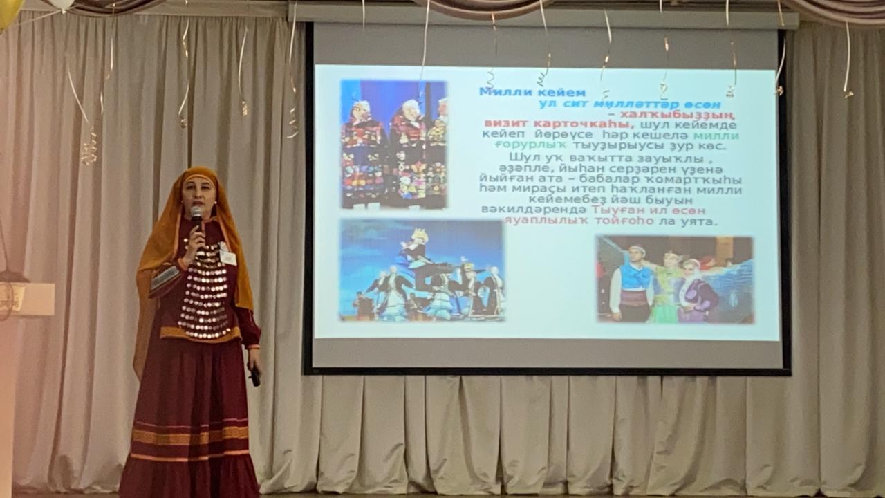 Әүхәҙиева Альбина Һиммәт ҡыҙы лайыҡлы сығыш яһап, төньяҡ-көнбайыш милли костюмды презентацияланы. 3-сө турҙан һуң уҡытыусыларҙы ҡотлап бүләкләү сараһы үтте. Башҡортостан Республикаһының Мәғариф һәм Фән Министрлығы тарафынан Диплом, Башҡортостан халыҡтар энциклопедияһы, КПК курстарҙың танытмаһын, методик йыйынтығын тапшырҙылар.