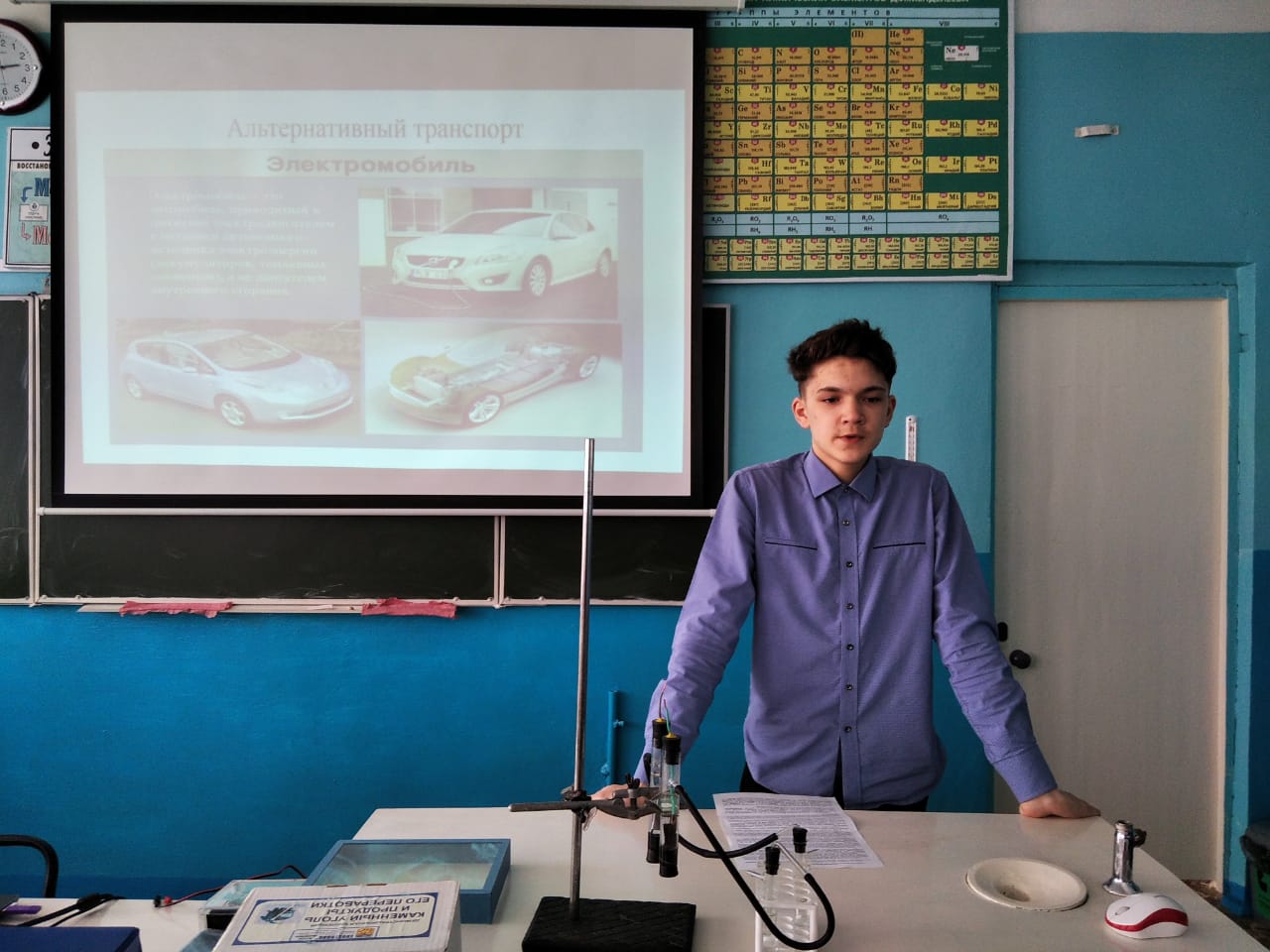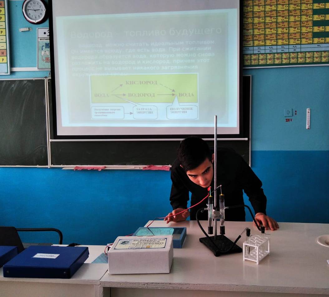Хаматьяров Мансур продемонстрировал опыты в рамках исследовательской работы "Топливо будущего".