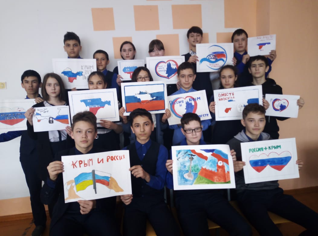 В 7б классе МБОУ СОШ №1 с.Верхние Татышлы прошел классный час, посвященный Дню воссоединения Крыма и России. Россия и Крым, мы вместе!