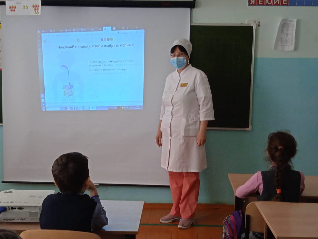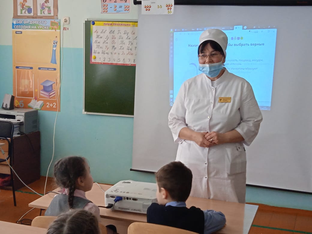 В 1 а классе МБОУ СОШ №1 с.Верхние Татышлы в рамках национального проекта «ЗДРАВООХРАНЕНИЕ» был проведен классный час «Будь здоров». На классный час пригласили фельдшера школы Ямалетдинову Ленарию Назгатовну. Учеников познакомили с основами активного и здорового образа жизни. Поговорили о правильном питании, физической активности, профилактике и отказе от вредных привычек. В конце урока ребята просмотрели мультфильм «Ох и Ах».