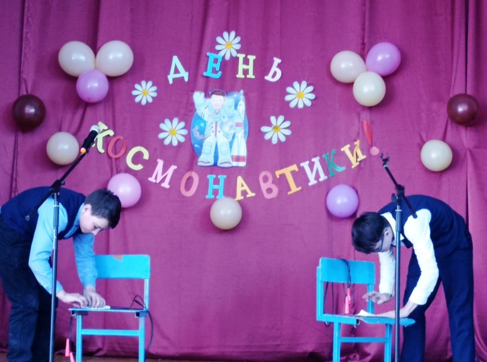 12 апреля в МБОУ СОШ № 1с. Верхние Татышлы состоялось мероприятие, посвященное Дню космонавтики. Этому празднику были посвящены музыкальные номера и различные конкурсы, подготовленные обучающимися 7г класса и классным руководителем Г. С. Шамсиевой. Участники викторины отвечали на вопросы по теме «Что мы знаем о космосе». Был проведен конкурс «Пропуск на космодром», в котором приняли участие обучающиеся 7 классов. Ребята вспомнили о первых космонавтах Ю.А. Гагарине, В.В. Терешкове и о многих других, кто является первопроходцем в освоении космического пространства. Они навсегда останутся в памяти учащихся, а их дела будут примером для подражания.