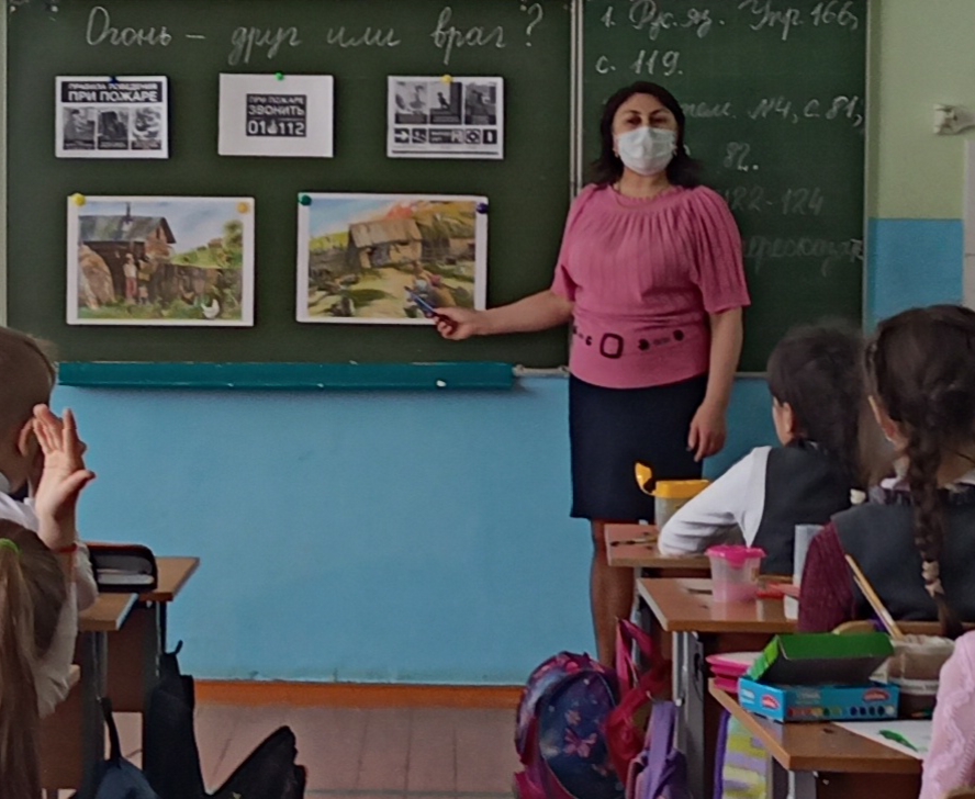 В целях пропаганды знаний по вопросам охраны безопасности жизни 26 апреля во 2б классе МБОУ СОШ №1 с.Верхние Татышлы прошел классный час по теме «Огонь - друг или враг?» В ходе беседы ребята отгадывали загадки, собирали пословицы, обыгрывали различные ситуации во время пожара.