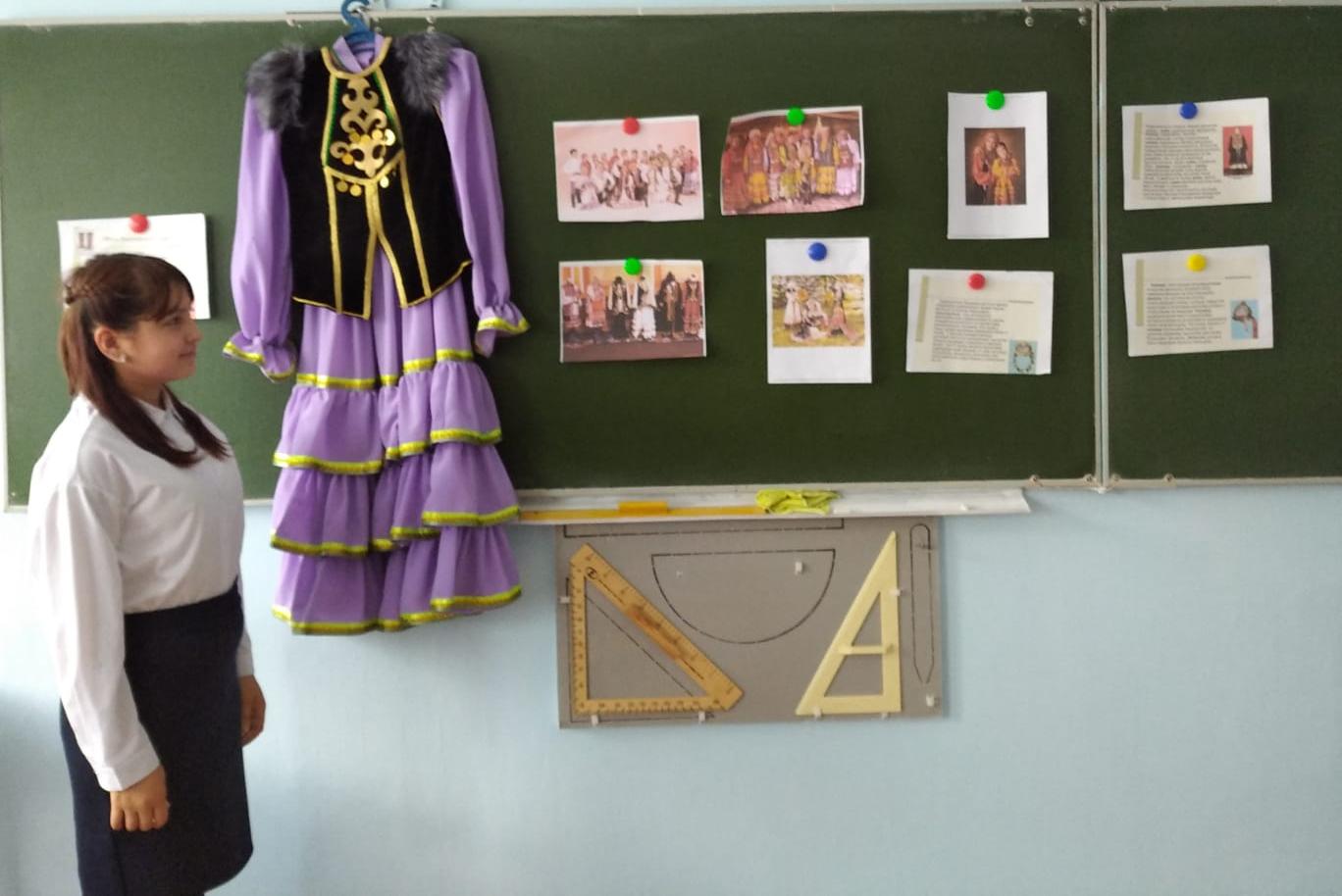В рамках мероприятия прошли классные часы, на которых обучающиеся 7 классов (классные руководители Нигаматьянова А.Р., Хузина Г.Р., Ахунова З.Р.) познакомились с особенностями национальных костюмов народов нашей Республики.