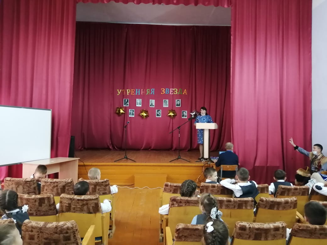 В рамках акции "Культурная суббота" для обучающихся 3-х классов прошло мероприятие «Утренняя звезда» с приглашением преподавателей Детской школы искусств Киямова А.С. и Садретдиновой Э.Ф. Классные руководители познакомили детей со знаменитыми людьми из Татышлинского района. Далее ребята прочитали стихотворения. Эльвира Фанисовна исполнила башкирский танец, показала некоторые движения. Ребята с большим удовольствием повторяли все эти движения. Айнур Саубанович рассказал детям о башкирских народных инструментах - курае и кубызе. Затем он сыграл различные мелодии на этих инструментах. Под музыку курая дети с желанием танцевали. После выступления ребята задали очень много вопросов преподавателям Детской школы искусств, некоторые дети захотели записаться на занятия, чтобы научиться танцевать и играть на курае.