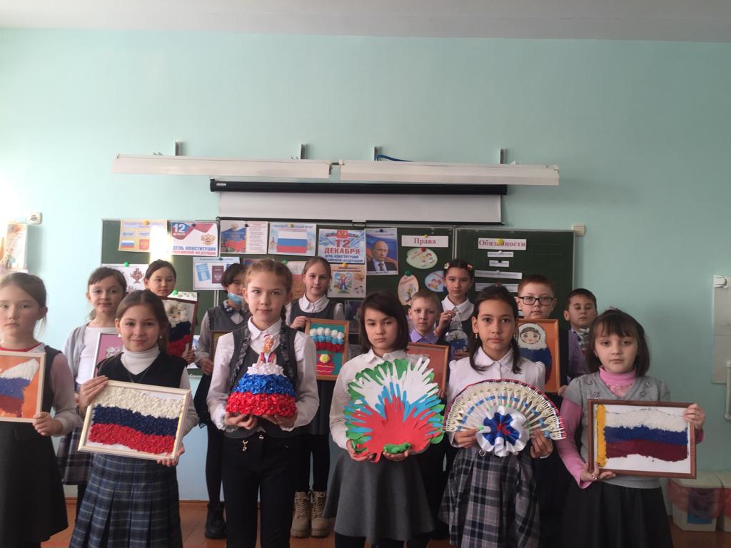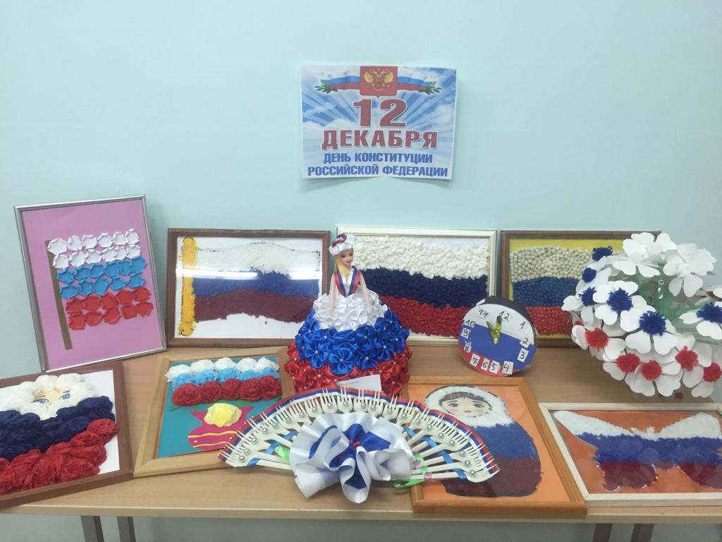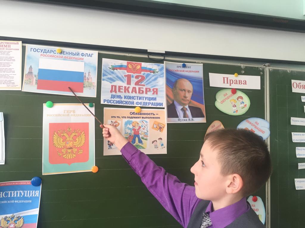 13 декабря в 4в классе прошёл классный час, посвящённый Дню Конституции РФ.Ребята узнали о Конституции, об устройстве нашей государственной системы, повторили о правах и обязанностях граждан, поиграли в игру «Найди символы России».А также вспомнили сказки и определили какие были нарушены права персонажей этих сказок.В конце классного часа организовали выставку поделок с Российской символикой.
